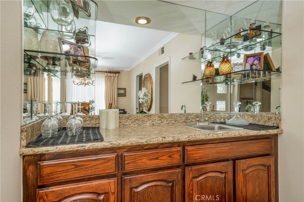 • Interior FeaturesBreakfast Area, Cathedral Ceiling(s), High Ceilings, Recessed Lighting, Entrance Foyer, Walk-In Closet(s), Bar, Beamed Ceilings, Built-in Features, Crown Molding, Galley Kitchen, Primary Suite, Storage, Track Lighting, Wet Bar