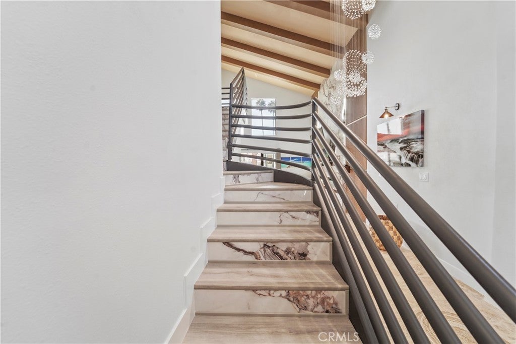 • Interior FeaturesBeamed Ceilings, Breakfast Bar, Ceiling Fan(s), Separate/Formal Dining Room, Eat-in Kitchen, Granite Counters, High Ceilings, Living Room Deck Attached, Open Floorplan, Recessed Lighting, All Bedrooms Up, Primary Suite