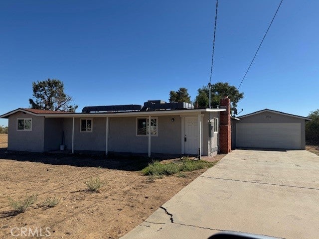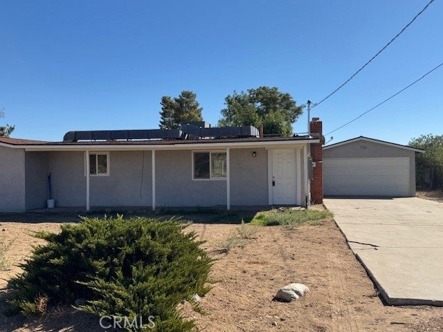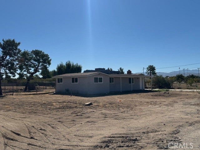 Cute starter home on 2.63 acres in West Palmdale in walking distance to the AV Mall. 3 bedrooms and 2 baths with a bonus room/dining room area. Brick fireplace in the living room, wood beam ceilings, Upgraded new 220 electrical box. The lot has chain link fencing on the sides with block fencing in back. There is also a small separate fenced area around the back of the house for dogs with a patio area and a 2 car garage on the side.