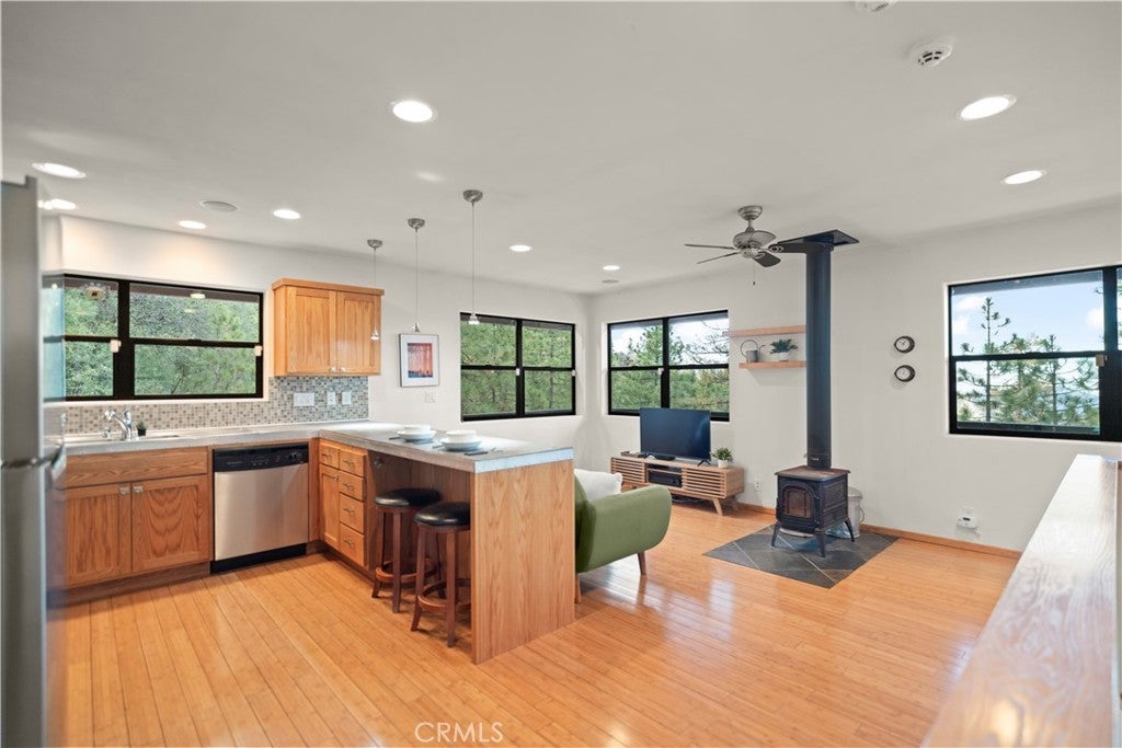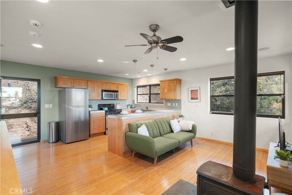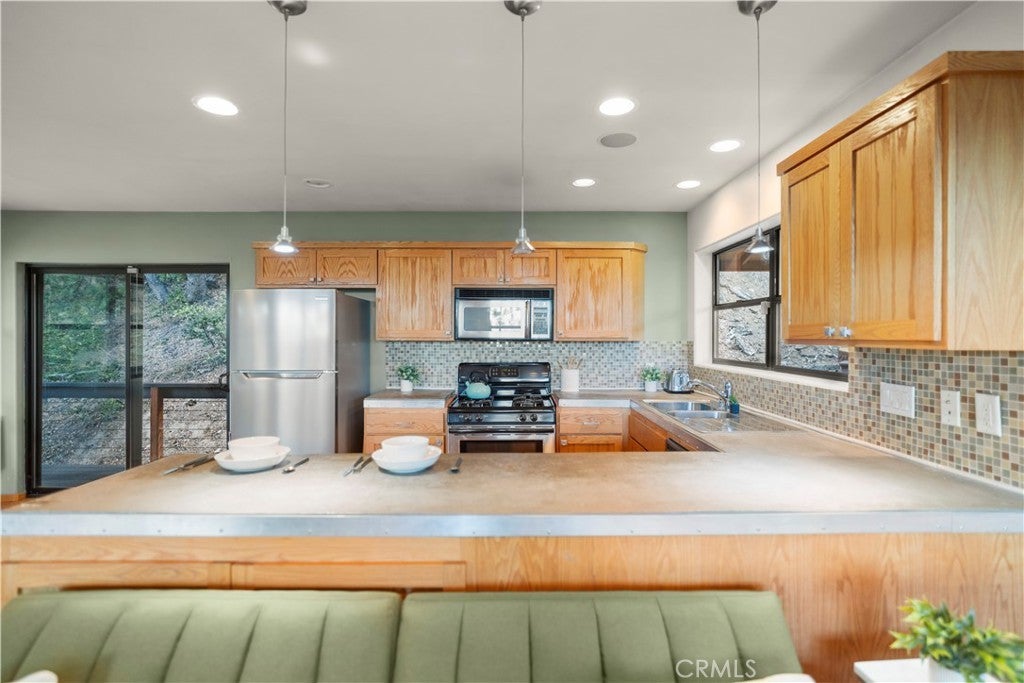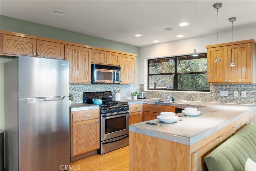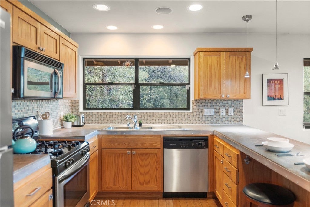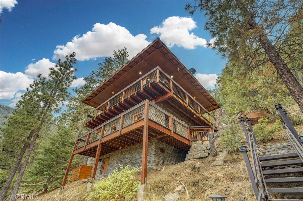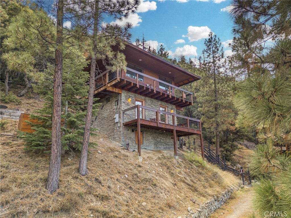 Prepare to be captivated by Zermatt Lookout! Located in the most desirable high-elevation area of PMC, this custom 2004 built home on Zermatt Dr is a true mountain retreat where privacy and stunning views meet. Situated on a peaceful cul-de-sac, this home is inspired by the legendary forestry lookouts of our national parks, featuring a handsome wood and rock exterior, a hipped roofline, and inviting wrap-around decks. This unique home offers 2 bedrooms and 1 bathroom across its 752 sq ft interior, all designed with custom finishes and boasting breathtaking views from every window. The open-floor plan on the top level features a bright living space, the kitchen (complete with stainless steel appliances and natural wood cabinetry), and a charming wood stove—perfect for those magical winter days. The property sits on a spacious 24,029 sq ft lot (approx. 0.55 acres), surrounded by majestic Jeffrey and Ponderosa pine trees. Extensive exterior walkways lead up the hillside to the house, an idyllic outdoor seating area, and a relaxing jacuzzi. The lot backs to a green belt and National Forest beyond, ensuring unobstructed northern mountain views and unparalleled seclusion. For convenience, you're just a short and scenic stroll to Lampkin Park and the charming village center. You'll enjoy easy access to Pine Mountain Club’s exceptional amenities, including a refreshing pool, a challenging golf course, an equestrian center, tennis courts, and a vast network of hiking and biking trails. For those seeking even more adventure, nearby campsites and forest escapes await. If you appreciate the rustic beauty of a forestry ranger's post, yet desire modern amenities and community access, this home speaks to you. A true one-of-a-kind mountain gem, the Zermatt Lookout is a must-see. Schedule your showing today!