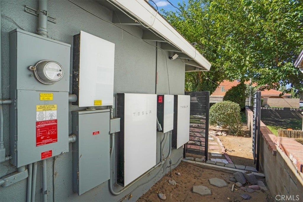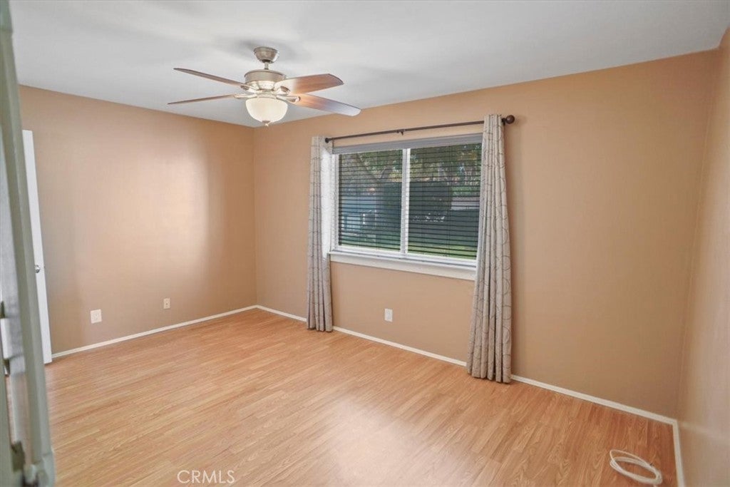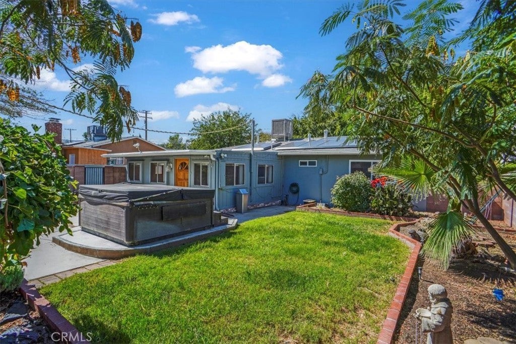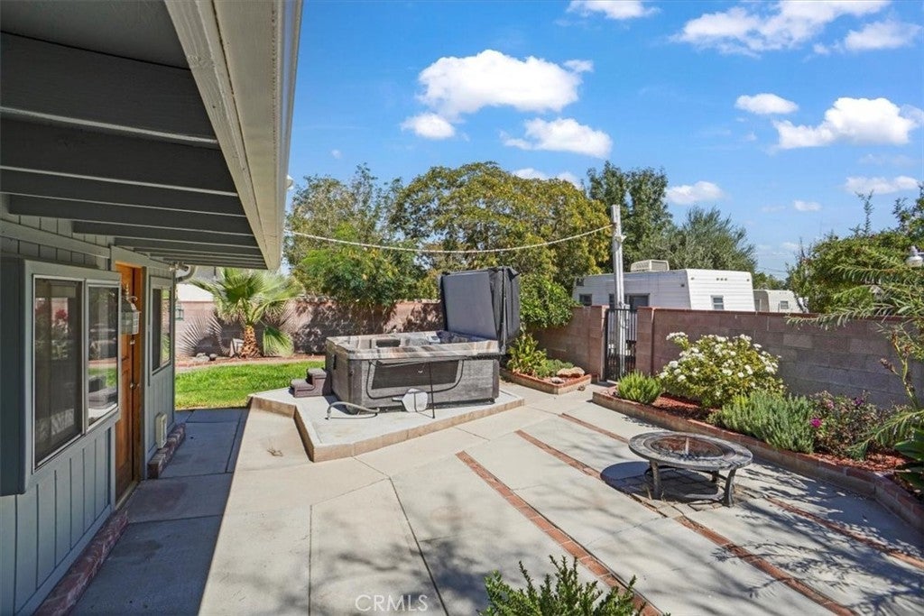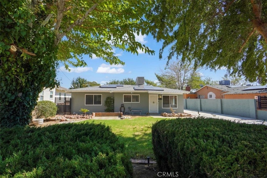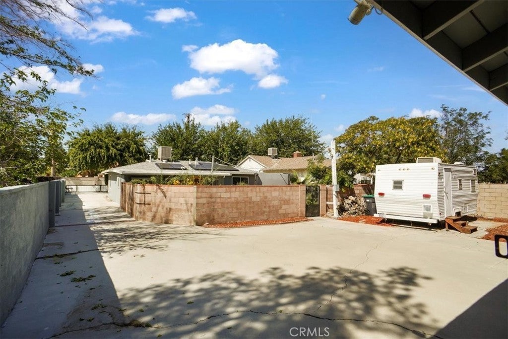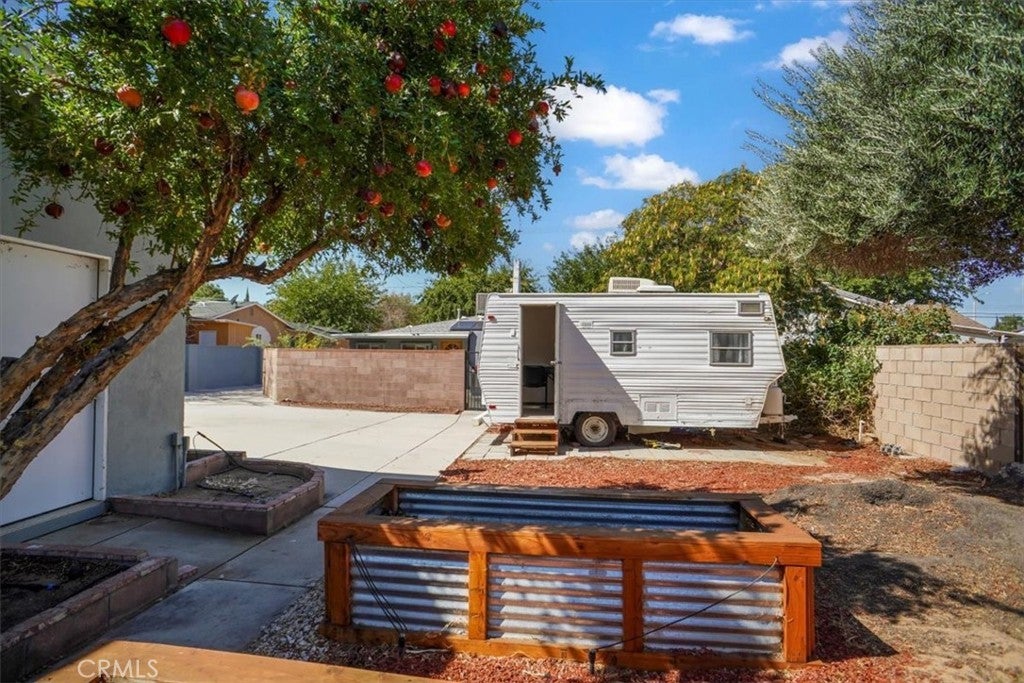 Amazing 3 Bedroom Gated Home on a Large 12,453 Sq. Ft. Lot with Paid Solar! This beautifully maintained home shines with fresh neutral paint and laminate flooring, offering a comfortable floor plan ideal for everyday living. The spacious living room flows seamlessly into the dining area, highlighted by ceiling fans and custom molding. The remodeled kitchen boasts quartz countertops, stainless steel appliances, a five-burner gas range, and built-in microwave. The upgraded bathroom features a custom tile enclosure, newer vanity, and modern fixtures. Each bedroom includes ceiling fans and distinctive woodwork. The property’s curb appeal stands out with electric gates and a fully landscaped front yard, while the expansive side yard provides ample RV access. A large enclosed patio (approx. 14x18) creates the feel of a family room extension. Outdoors, enjoy a backyard with grass, concrete patio space, and an above-ground spa. Gardening enthusiasts will love the raised planter beds and fruit trees. Additional improvements include a detached two-car garage—ideal for potential ADU conversion—and even a camper trailer converted into a portable office, included with the sale. This home truly offers space, versatility, and opportunity. Don’t let this fantastic property pass you by!