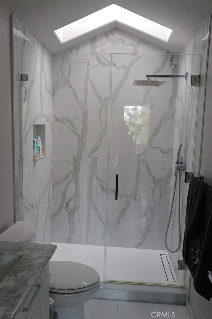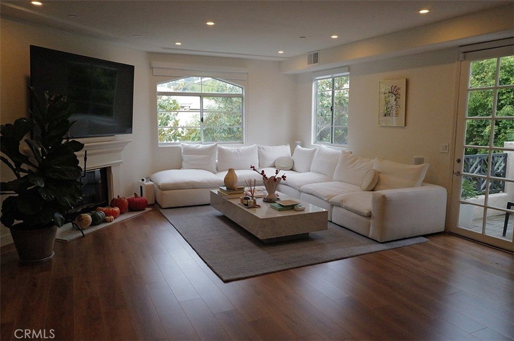 Peacefully tucked away in the corner of the building and surrounded by lush greenery, this top-floor, corner unit offers a rare combination of privacy, natural light, and sophisticated design. With 2 bedrooms, 2.5 bathrooms, and 1,681 square feet of fully renovated living space, this home feels like a private retreat in the heart of West LA, minutes from the Century City mall. Inside, you'll find soaring ceilings, large windows, and three skylights that flood the space with natural light. The open-concept layout flows beautifully into a renovated kitchen with real quartzite countertops and sleek, modern finishes. The powder room features Roman clay walls, while the two full bathrooms include elegant marble-topped vanities and high-end luxury Phylrich faucets that elevate the space. Cozy up by one of the two fireplaces—in the living room and the primary suite—or step outside onto two private balconies, nestled among vibrant trees for a peaceful, green scene. Additional highlights include (1) only one shared wall with neighbor – ultra-private top corner unit; (2) three walk-in closets + dedicated storage unit; (3) two designated parking spots with a built-in EV charger; (4) abundant natural light from skylights and oversized windows; (5) surrounded by greenery for exceptional peace and privacy; (6) walking distance to Westfield Century City Mall, shopping, dining, and entertainment; (7) in-unit washer and dryer included; (8) building features 12 guest parking spots, and has a gym and hot tub; and (9) furniture in photographs is available for rent or purchase. This serene, top-floor sanctuary blends thoughtful luxury with everyday convenience — a rare find in one of LA's most coveted neighborhoods.