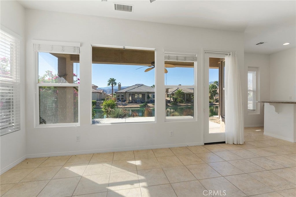 *Buyers may qualify for up to $10,000 in closing cost assistance based on the property’s location—ask for details.* Experience peaceful lakefront living in the gated community of Mission Shores at Lake Mirage. This beautifully maintained 3-bedroom, 3-bath home offers an open-concept design featuring a spacious great room with a fireplace and expansive windows that showcase serene lake and mountain views. The kitchen is equipped with granite countertops, a breakfast bar, and ample cabinetry, ideal for everyday living and entertaining. One bedroom includes a private entrance, making it perfect for guests, a home office, or flexible living arrangements. Step outside to enjoy a tranquil waterfront setting, perfect for relaxing or hosting gatherings. Additional highlights include tile flooring, a two-car garage, and access to community amenities such as walking paths, and scenic lakes. Conveniently located near shopping, dining, golf courses, and the upcoming Disney Cotino Storyliving community, bringing future resort-style amenities and entertainment just minutes away. Make an offer now.