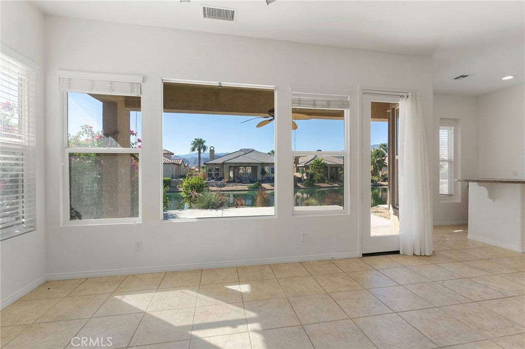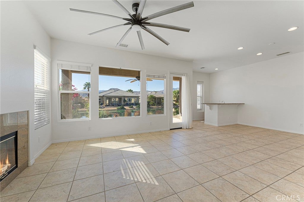 Enjoy peaceful lakefront living in the gated community of Mission Shores at Lake Mirage. This well-maintained 3-bedroom, 3-bath home features an open layout with a spacious great room, fireplace, and large windows capturing lake and mountain views. The kitchen offers granite countertops, a breakfast bar, and generous cabinet space. One of the bedrooms includes a private entrance, ideal for guests, an office, or flexible use. Outdoor space provides a tranquil setting overlooking the water—perfect for relaxing or entertaining. Additional highlights include a two-car garage, tile flooring, and access to community pools, walking paths, and scenic lakes. Conveniently located near shopping, dining, golf, and the new Disney Cotino Storyliving community, offering future resort-style amenities and entertainment nearby. Seller is very motivated. Don't miss this opportunity. Submit your offer now.