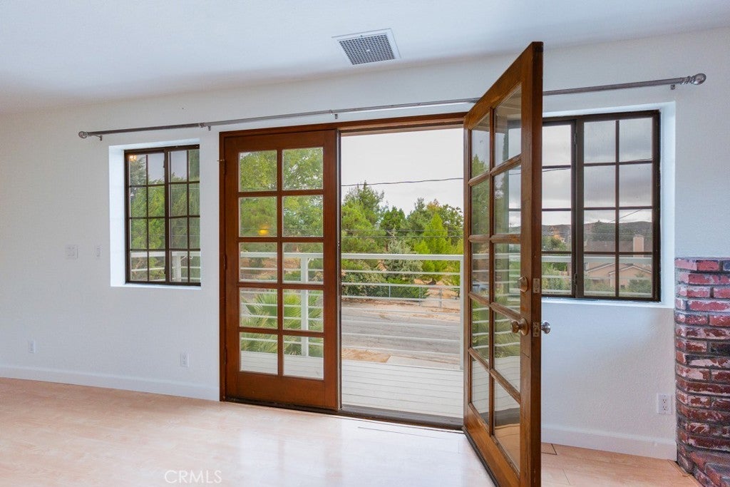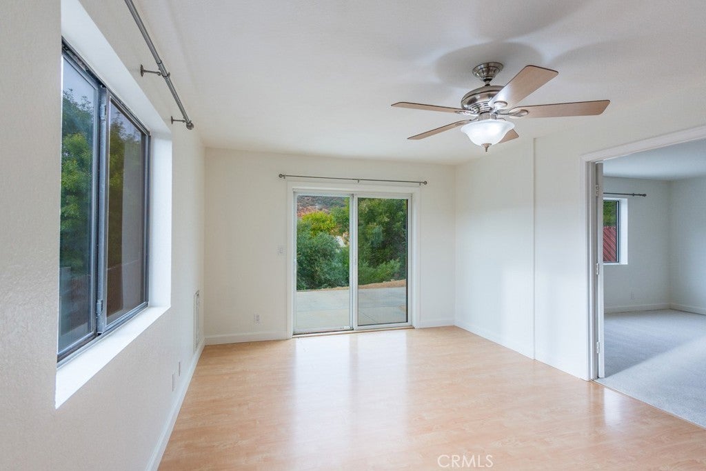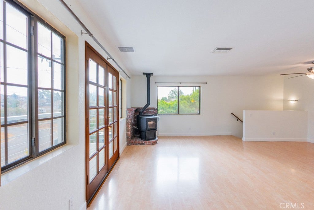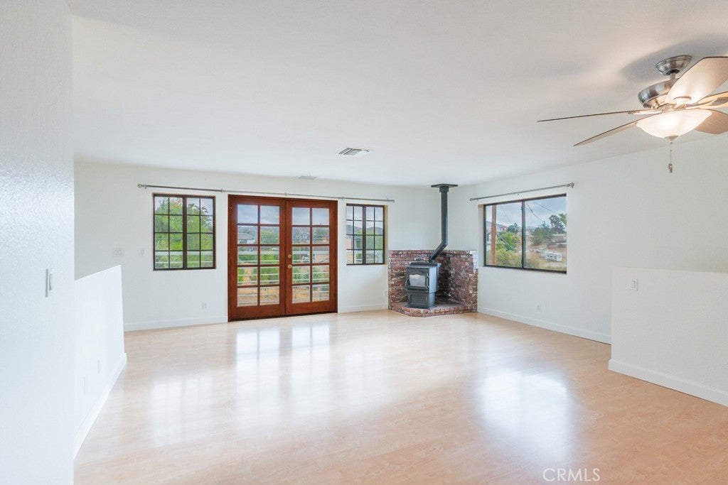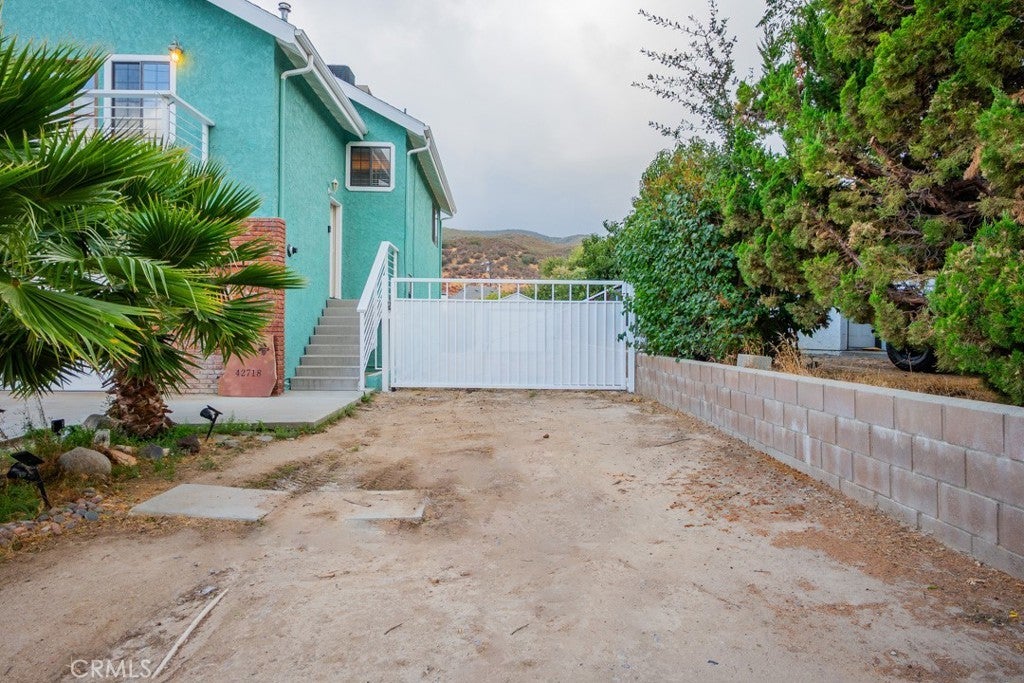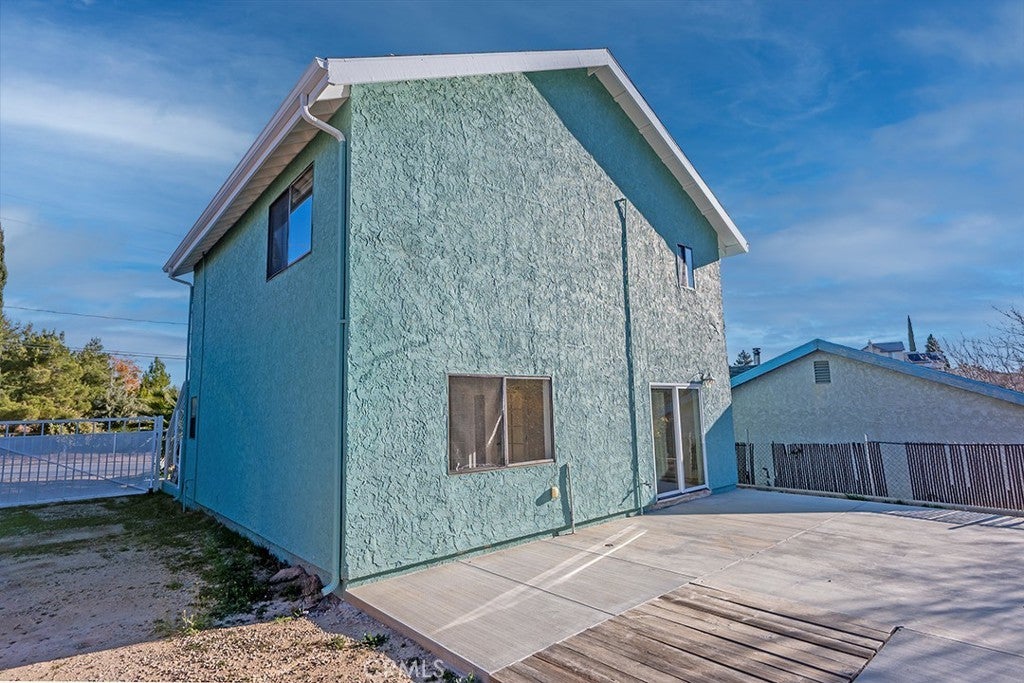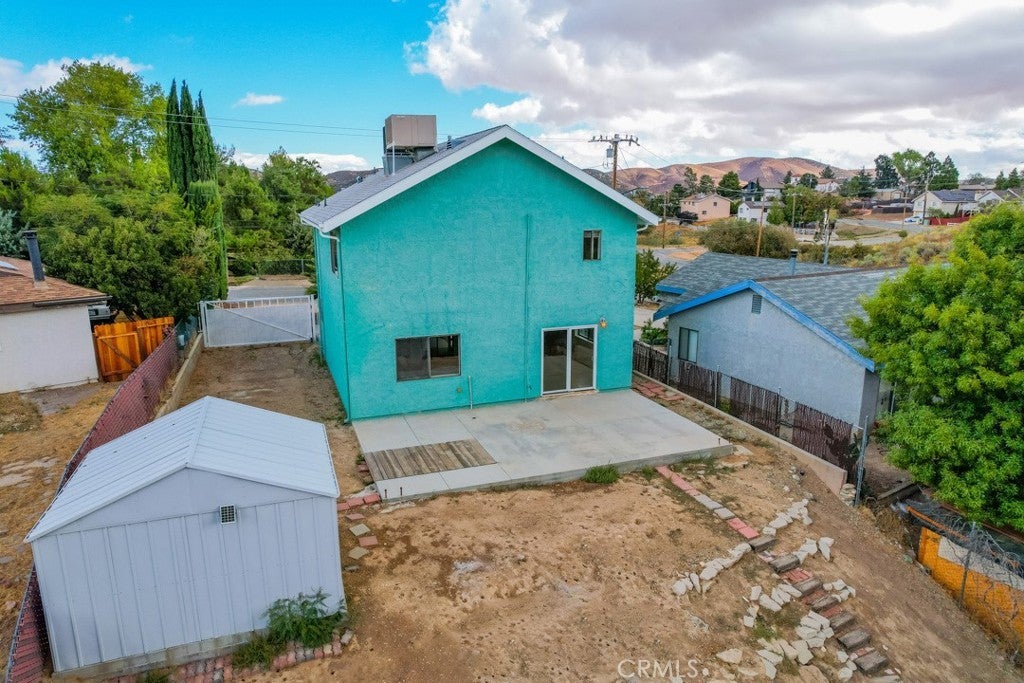 Welcome to this beautifully upgraded two-story, 3-bedroom, 3-bath home in the peaceful Lake Hughes community. Recent upgrades include brand-new windows, carpeting, and fresh interior and exterior paint, making it truly move-in ready. The upper level features a spacious living room with French doors opening to a balcony with panoramic mountain views. A cozy pellet stove with built-in thermostat and automatic ignition provides warmth in winter, while a Nest thermostat adds modern comfort. For cooling, the home includes both a swamp cooler and rooftop AC condenser, with upgraded upducts for efficient airflow throughout the upstairs bedrooms, living room, and kitchen. The kitchen offers granite countertops, stainless steel appliances, and LED lighting. This level also includes a primary suite with en suite bath, a second bedroom and bath, and a convenient laundry nook with washer and dryer. Downstairs, a larger primary suite includes its own family room, full bath, and sliding doors to the backyard—ideal for privacy or multigenerational living. The 2-car garage offers extra storage, and a gated RV driveway wraps along the side of the home. Outdoors, enjoy a deep fenced backyard with a concrete terrace and large aluminum storage shed, while the palms in the front add a true California feel. Whether you're seeking a turnkey home with beautiful hilltop views or a tranquil environment suited for multigenerational living, this property offers the perfect blend of charm and modern upgrades.