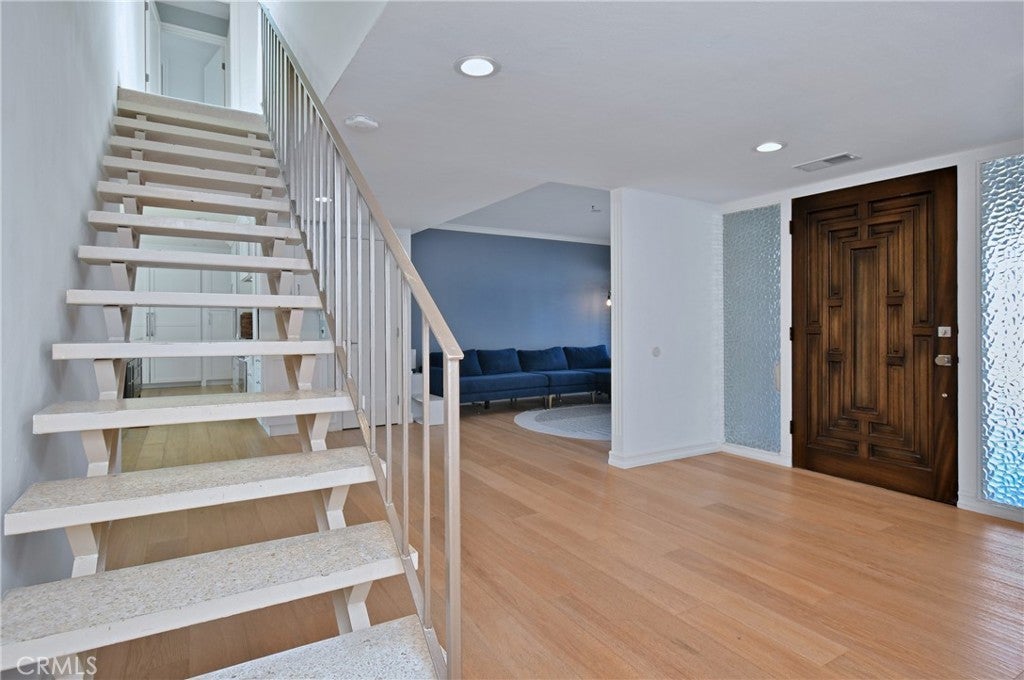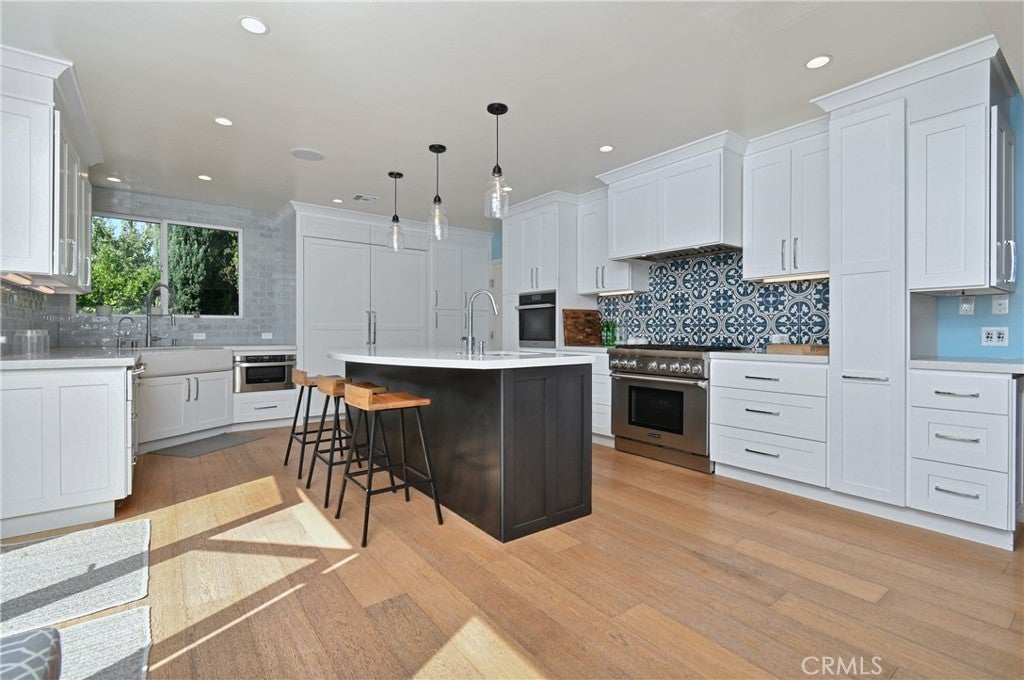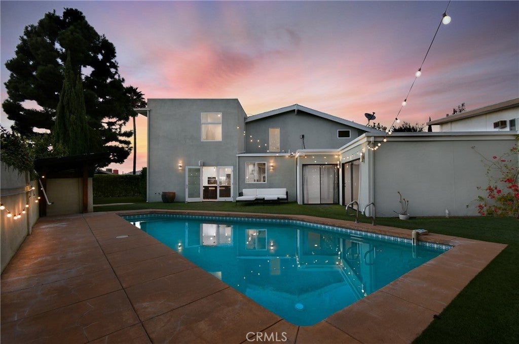 Beautiful Mid-Century Modern high in the hills of Studio City, this midcentury-inspired architectural has been remodeled with designer touches throughout. Capturing fantastic views of Studio City and the hillsides beyond, the 5-bedroom retreat features light, bright interiors, a formal dining room and a living room with soaring cathedral ceilings and a wood-burning fireplace. The remodeled chef’s kitchen boasts a center island, built-in dining nook, Quartz counters, tile backsplash, shaker cabinets, a walk-in pantry and Thermador/Miele appliances. Sliding doors open to the entertainer’s backyard with a pool, alfresco dining area, manicured gardens and terraced patios. Bedrooms and baths include the primary suite with dual closets and a double rain shower. Features include an office, leased solar and a sound system, located in the Carpenter school district, moments from the Fryman Canyon Trails and shops and restaurants on Ventura Blvd. Home needs minor repairs and a refresh.