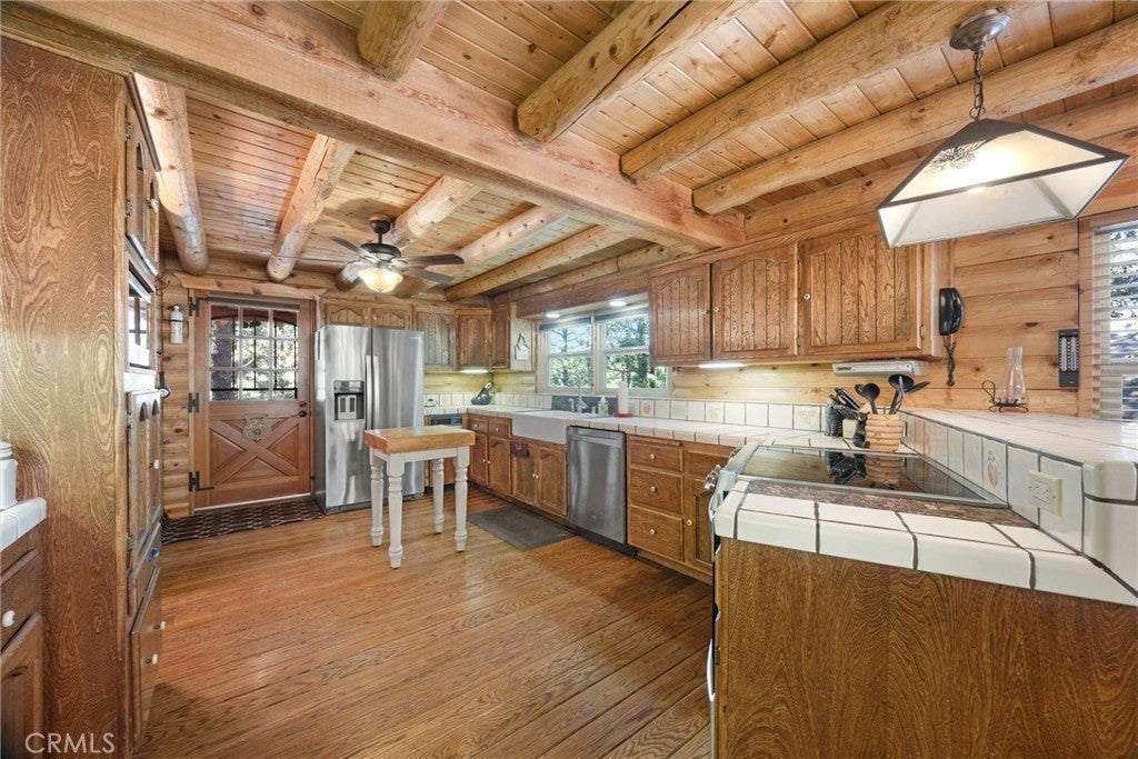 Beneath a canopy of whispering pines, 1521 Dogwood Way feels like a storybook escape brought to life. This authentic Real Log Homes cabin has been lovingly cared for, its logs and decks freshly refinished to a warm, golden glow. Step inside and you’re greeted by the crackle of a brick fireplace and the soft hum of a pellet stove — the kind of cozy comfort that makes winter nights something to look forward to. The living and dining areas open easily for gathering with family or friends, while upstairs, three peaceful bedrooms frame forest views and morning light filtered through the trees. Downstairs, the finished walk-out basement invites you to slow down and stay awhile — a place for game nights, movies, or laughter that lasts late into the evening. Outside, covered decks stretch toward the forest, a fenced dog run waits for your four-legged friend, and a large shed keeps mountain life organized. Life here extends beyond the cabin itself. Ownership in Pine Mountain Club includes access to an Olympic-style pool and spa, tennis and pickleball courts, golf course, equestrian center, and clubhouse activities — plus year-round essentials like snow removal, road maintenance, trash service, and 24/7 patrol. With Kern County Fire Station 58 right in the community, complete with paramedics and a helipad, peace of mind comes naturally here among the pines.