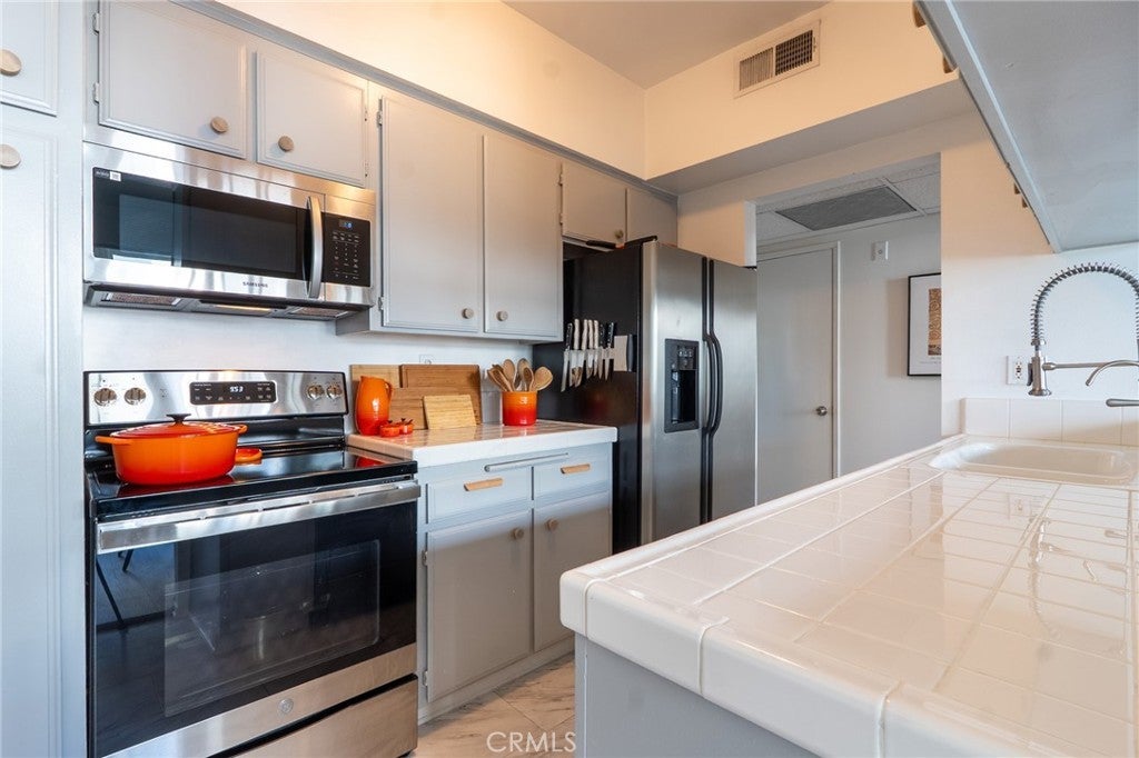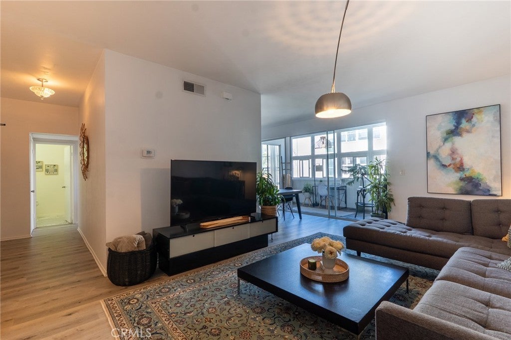 Located in the heart of Sherman Oaks, just one block south of Ventura Blvd, this bright and spacious 1-bedroom, 2-bath condominium is part of the highly desirable and luxurious Sherman Villas , one of the most sought-after buildings south of the Blvd, surrounded by multi-million dollar homes. Unit 216 enjoys a prime interior location overlooking the lush, resort-like courtyard with mature trees and peaceful greenery offering abundant natural light throughout.Enter through double doors into an inviting open-concept living and dining area that flows seamlessly into a charming sunroom overlooking the courtyard ideal for a home office, reading nook, or relaxation space. The galley kitchen features stainless steel appliances, including a new microwave, newer oven, refrigerator and dishwasher , tile countertops, and ample cabinetry.The generous bedroom features a beautiful floor-to-ceiling window that brings in natural light and greenery views, two closets including a newly built-in eight-door white wardrobe reaching the ceiling, and an en-suite bathroom with a nice-sized walk-in closet. A second full bathroom provides added convenience for guests.This well-maintained unit also includes newer laminate flooring throughout. Sherman Villas offers resort-style living with a swimming pool, spa, fitness center, and beautifully landscaped garden courtyard. The secure, well-managed building includes gated entry and one parking space in the underground garage.Enjoy unmatched urban convenience with neighborhood charm , just moments from Ventura Blvd’s best restaurants, cafes, boutiques, and Whole Foods, with easy freeway and Westside access.