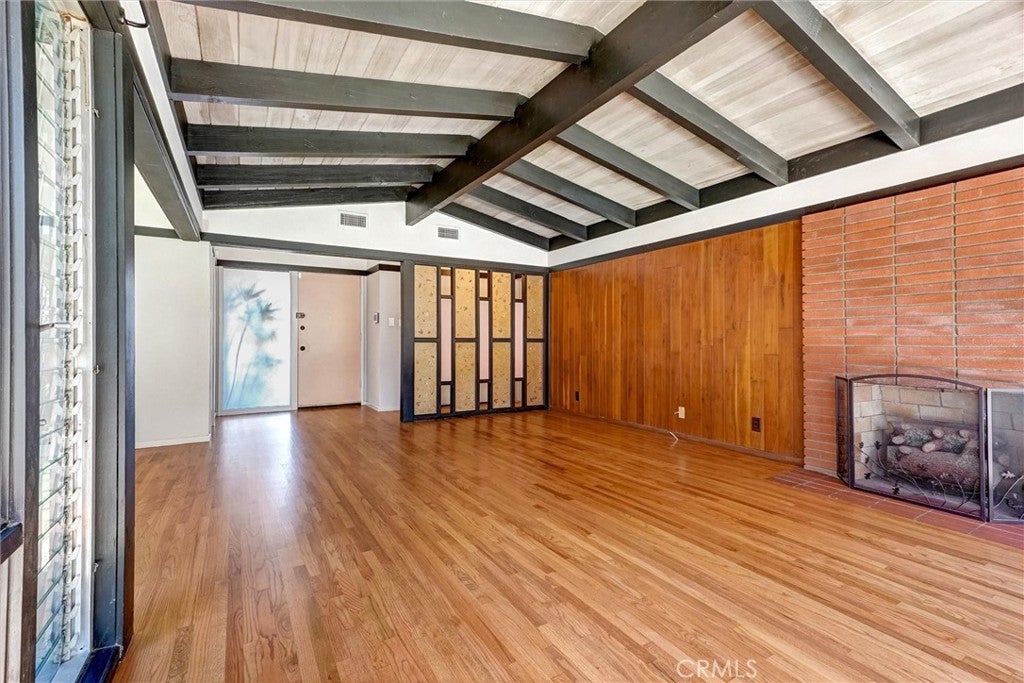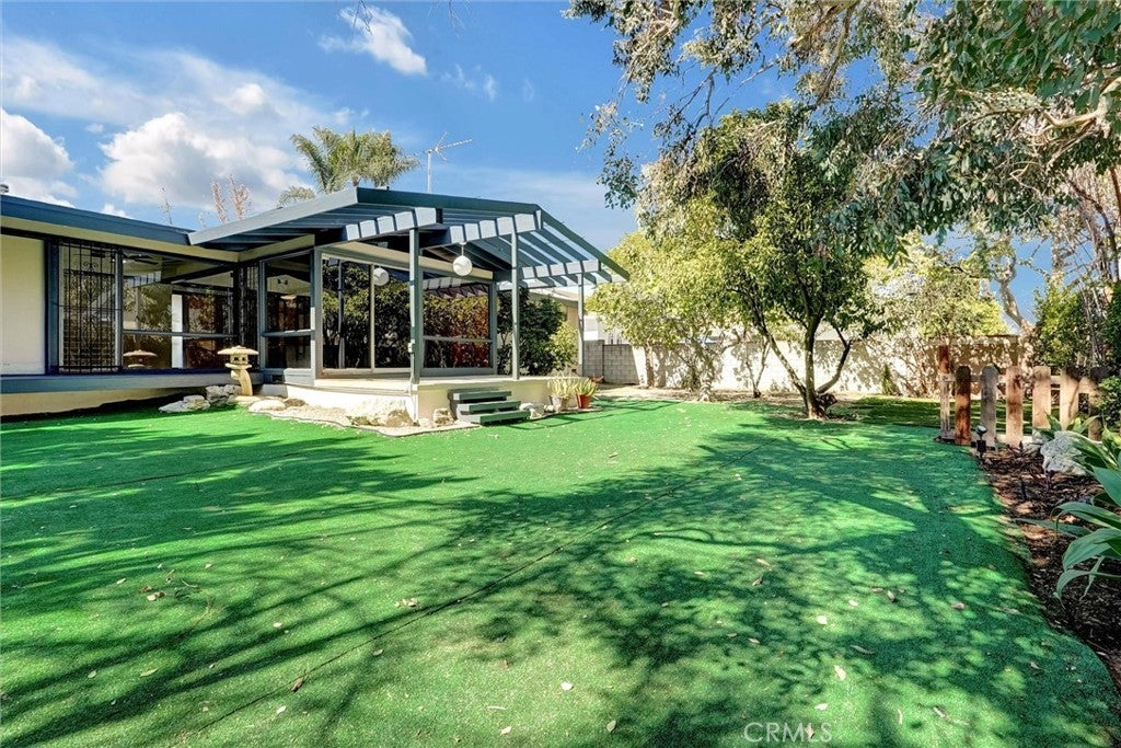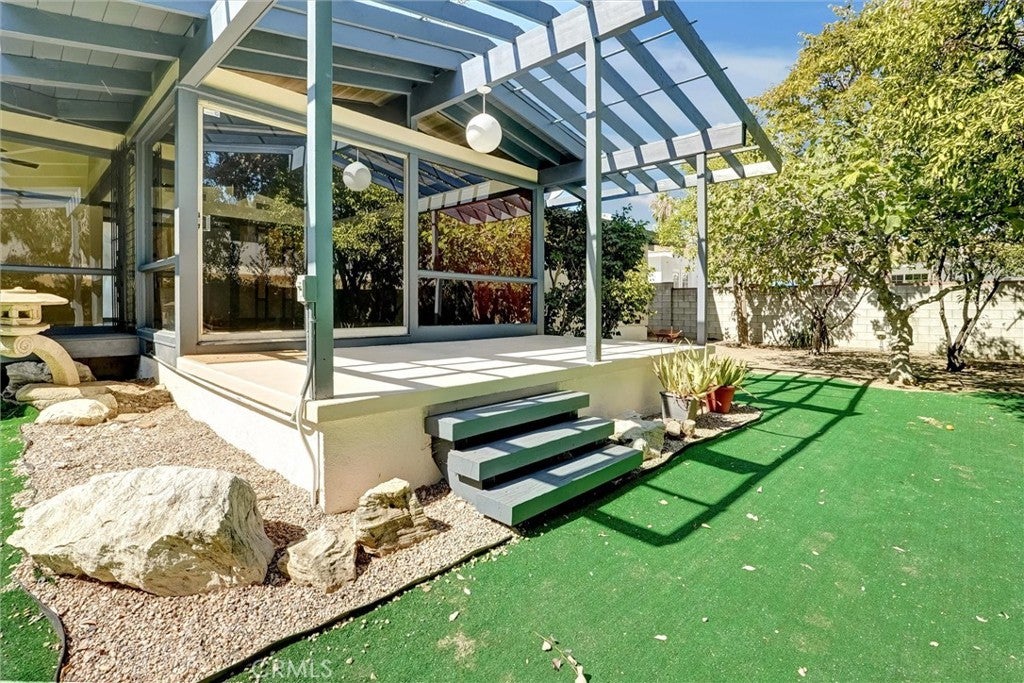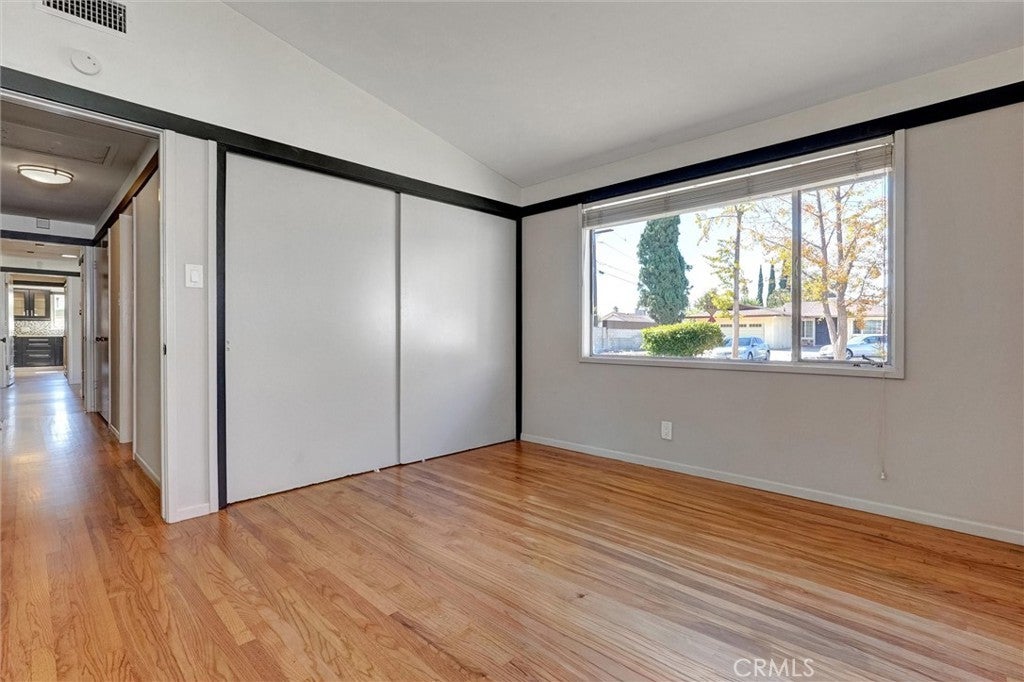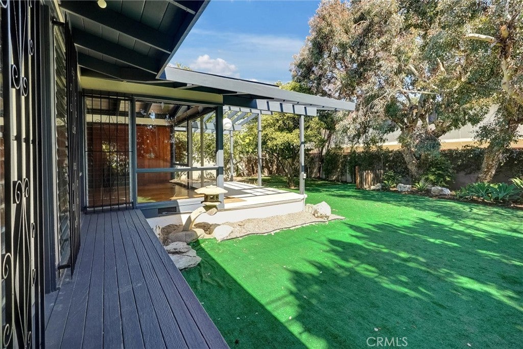 Tucked away on a quiet cul-de-sac, this inviting mid-century residence combines timeless character with a unique, easy-flowing floor plan — perfect for first-time buyers or anyone looking for comfortable single-level living. Nearly 1,700 sq. ft. of living space includes three bedrooms and two baths with freshly redone hardwood floors and paint thoughout,plus A/C,. Set on a large, beautifully landscaped lot, the heart of the home is a dramatic living room with pitched ceilings,where floor-to-ceiling glass walls open to a manicured, breezy backyard, creating a true indoor-outdoor connection. The updated kitchen adds everyday functionality, while the bathrooms offer an opportunity to bring your own design vision to life. Subtle Asian-inspired landscaping,with auto sprinler system and new back wall ficus adds a tranquil touch to the curb appeal, enhancing the serene setting. Located close to North Hollywood’s favorite shops, parks, and freeway access, this home offers comfort, character, and potential—all in a peaceful neighborhood setting, in addition to ADT Security System and off street parks for 4x cars.