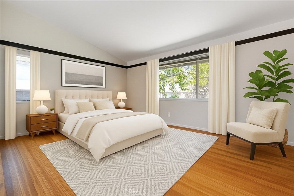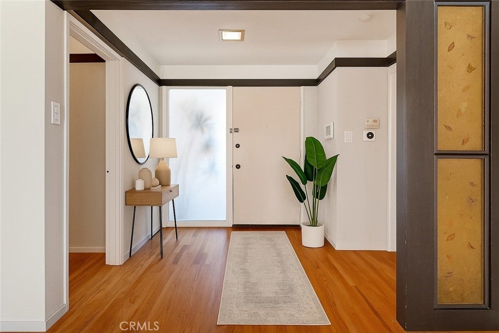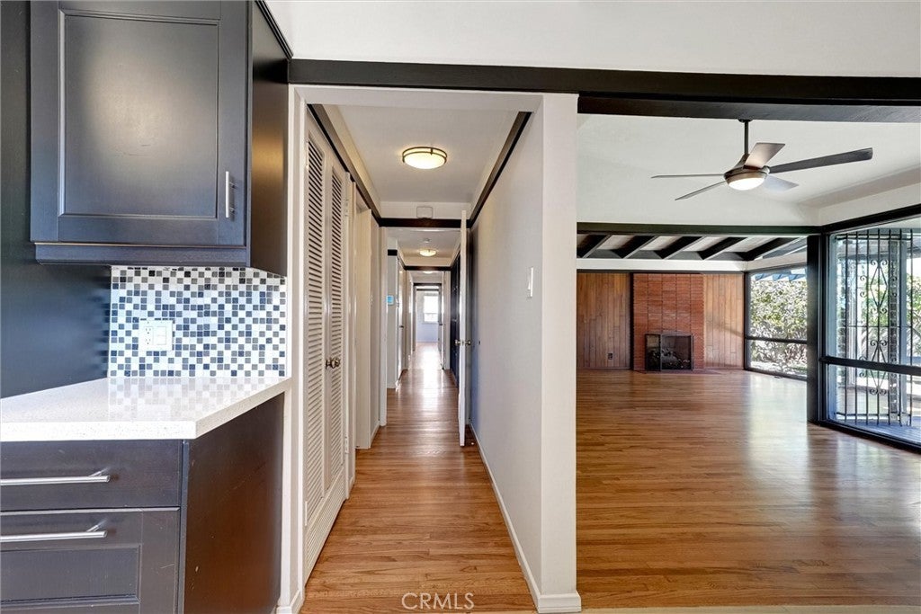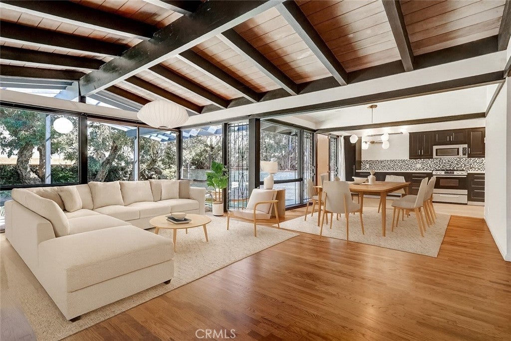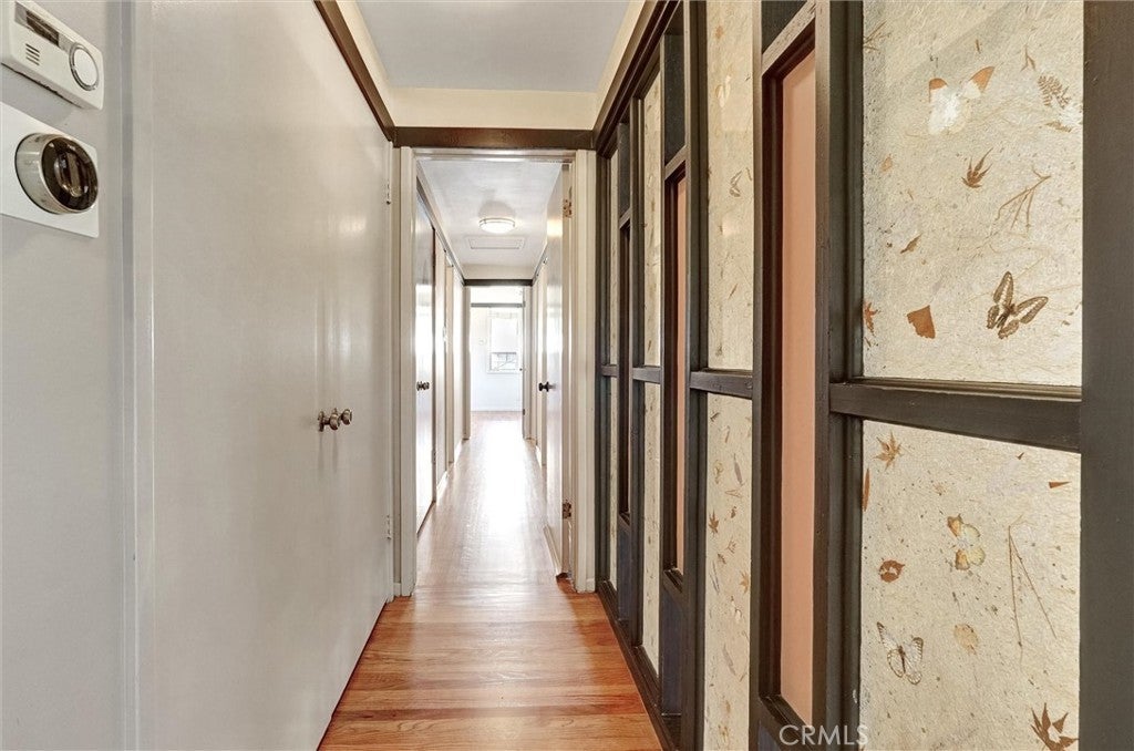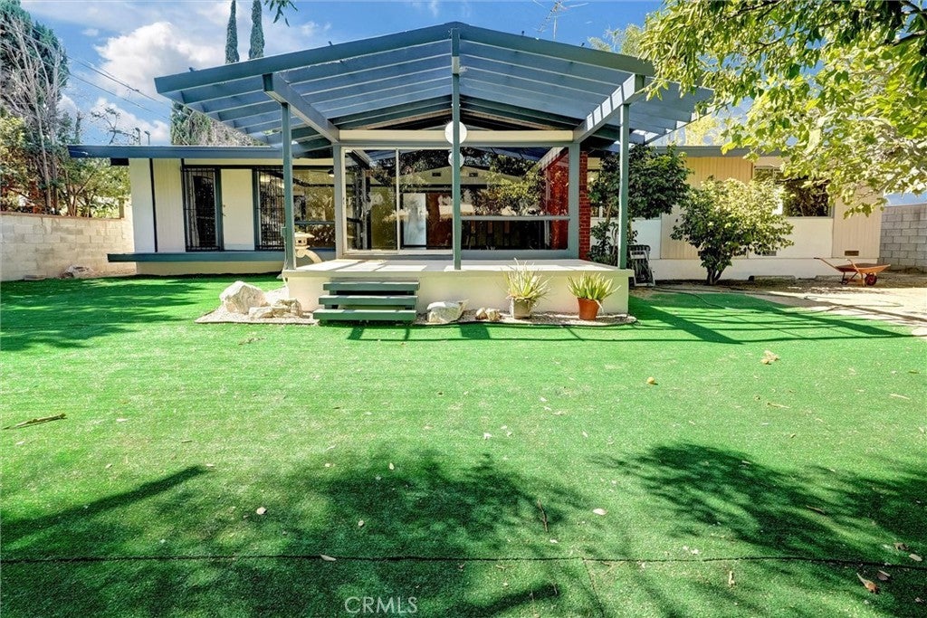 Tucked away on a quiet cul-de-sac, this inviting mid-century residence combines timeless character with a unique, easy-flowing floor plan — perfect for first-time buyers or anyone looking for comfortable single-level living. Nearly 1,700 sq. ft. of living space includes three bedrooms and two baths with freshly redone hardwood floors and paint thoughout,plus A/C,. Set on a large, beautifully landscaped lot, the heart of the home is a dramatic living room with pitched ceilings,where floor-to-ceiling glass walls open to a manicured, breezy backyard, creating a true indoor-outdoor connection. The updated kitchen adds everyday functionality, while the bathrooms offer an opportunity to bring your own design vision to life. Subtle Asian-inspired landscaping,with auto sprinler system and new back wall ficus adds a tranquil touch to the curb appeal, enhancing the serene setting. Located close to North Hollywood’s favorite shops, parks, and freeway access, this home offers comfort, character, and potential—all in a peaceful neighborhood setting, in addition to ADT Security System and off street parks for 4x cars.