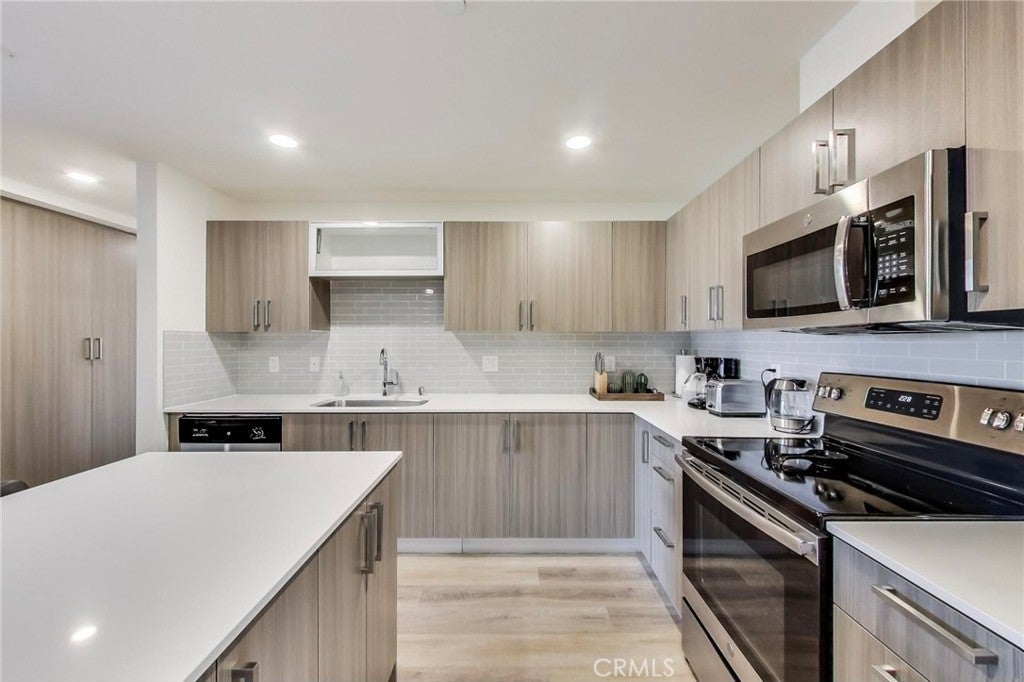 PENTHOUSE !! A true toast to modern living in North Hollywood CA! The stage has been set for this stylish and contemporary property that spans roughly 1573 sq.ft of comfortable living space. This rare 3 bedroom, 2 bathroom condo offers a blend voguish sophistication and chic coziness that you can find nowhere else on the market. Its features include: an open floorplan, LED recessed lighting, newer AC, high-ceilings, modern kitchen w/large center island, quartz counter tops, new appliances, engineered wood flooring, spacious bedrooms, walk-in closet, fully updated bathrooms w/quartz counter tops, updated cabinets, in-unit laundry (stackable washer/dryer), private balcony deck, dual pane windows for energy efficiency, wheelchair accessible, underground garage parking (2 spaces/tandem), and so much more. Close to the popular NOHO Arts District, this rare beauty is only a heartbeat away from local restaurants, cafes, shopping, nightlife, and entertainment. SoCal Living at its finest !