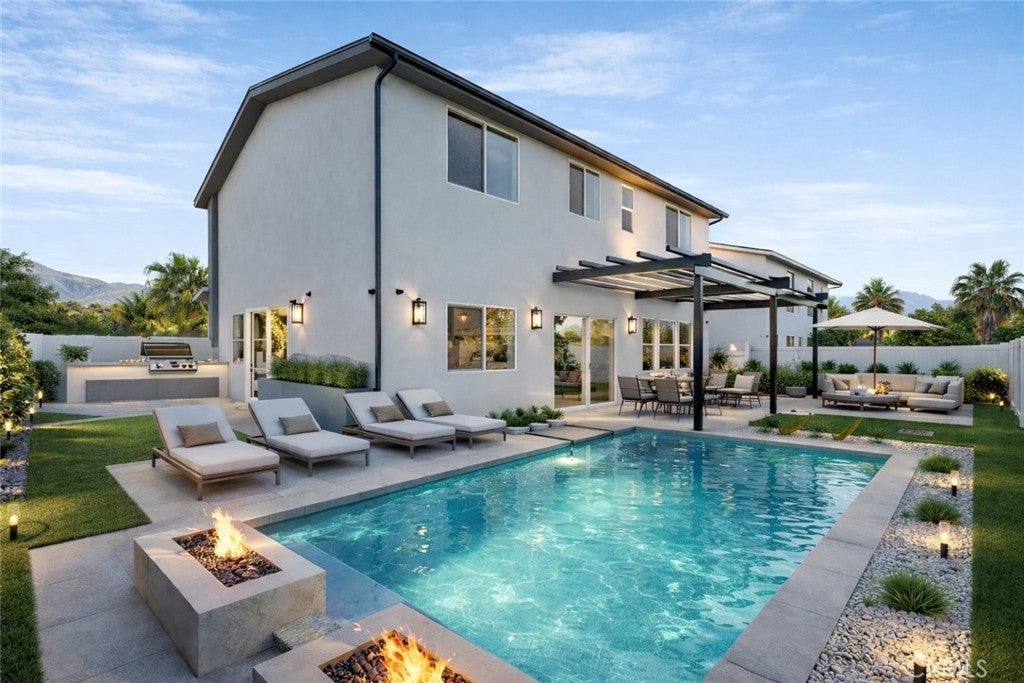 Exceptional Value: Price Reduction on New Construction — Backyard Shown in Renderings! Welcome to this immaculate 5-bedroom, 3-bathroom home offering 2,545 sq. ft. of stylish living space. Perfectly located with convenient access to the 5, 405, 210, and 118 freeways. Step inside and be captivated by the open floor plan, soaring high ceilings, and abundant natural light. Designer engineered wood flooring flows seamlessly throughout the home, while a striking dark wood accent wall in the living room adds a bold, modern touch. The gourmet kitchen is a true showstopper, featuring: Quartz countertops ¦Stainless steel appliances ¦Sleek white cabinetry with black hardware ¦Gold-accented light fixtures ¦A unique honeycomb wine bar—ideal for entertaining. The custom steel front door makes a dramatic entrance, and every finish throughout the home has been thoughtfully selected to embody modern elegance and comfort. Outside, enjoy your private landscaped backyard with lush new grass and a dedicated patio area—perfect for al fresco dining or quiet evenings under the stars. A two-car garage offers convenience and extra storage. Located in the sought-after community of Sylmar, this home offers the perfect blend of style, space, and accessibility. (Plans have be submitted to the city for garage conversion into ADU 1Bedroom 1 Bathroom)