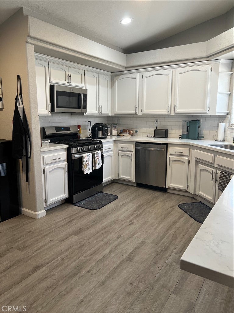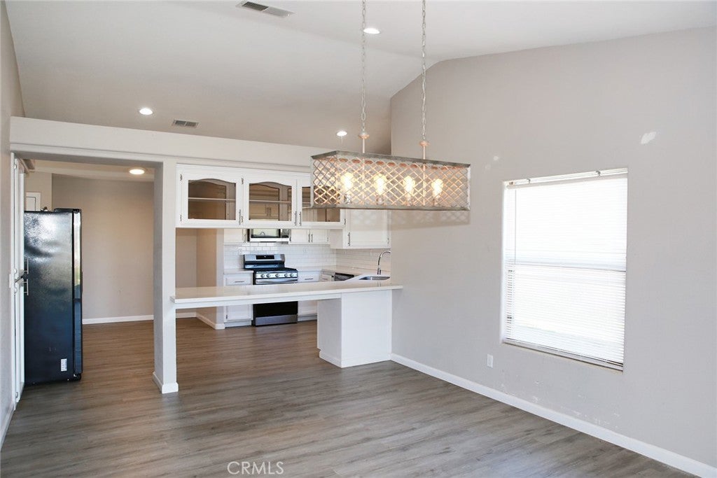 Welcome to this stunning 3-bedroom, 2-bathroom home offering 1,776 sq. ft. of stylish living space! Step into the spacious living room featuring gorgeous stacked stone fireplace, perfect for cozy evenings. The open dining and kitchen area provides the ideal space for gathering — complete with quartz countertops, a breakfast bar, and stainless steel appliances for the modern chef. Enjoy laminate flooring and abundant natural light flowing throughout the home. Both bathrooms are elegantly finished with tile and quartz countertops, giving a luxurious touch. The primary suite is a true retreat with a large master bath for added comfort. A sliding glass door leads to the backyard — perfect for relaxing, entertaining, or creating your own outdoor oasis. Modern updates, elegant finishes, and a functional layout make this home a must-see! Don’t miss the opportunity to call this beautiful property your new home in California City. Schedule your showing today. Short Sale subject to lender approval