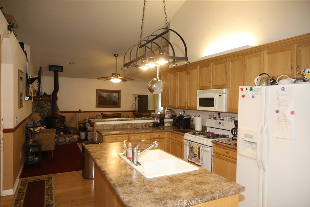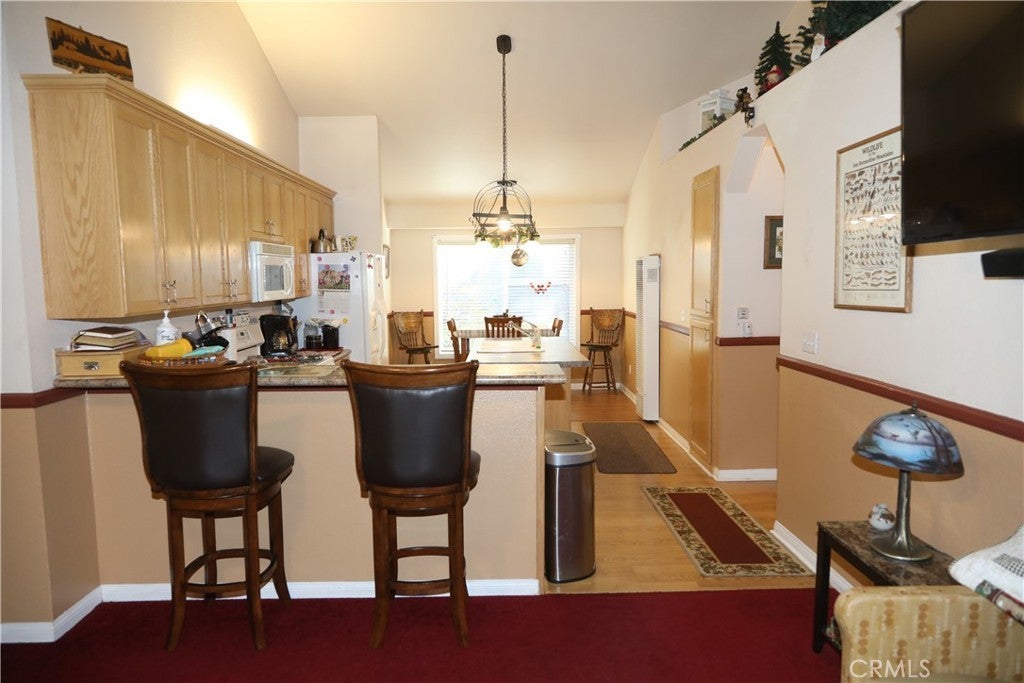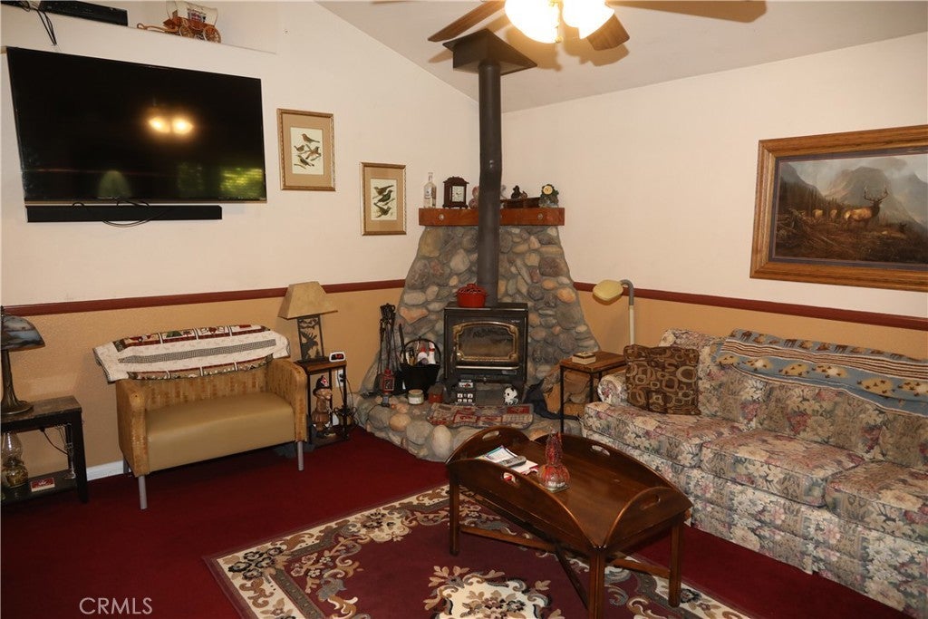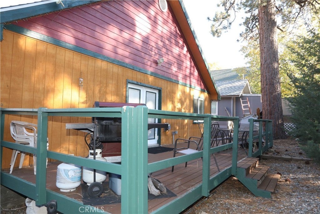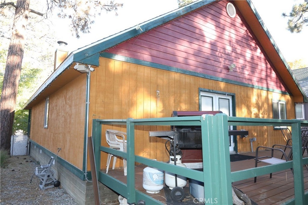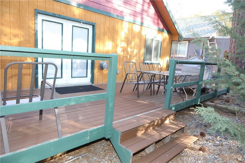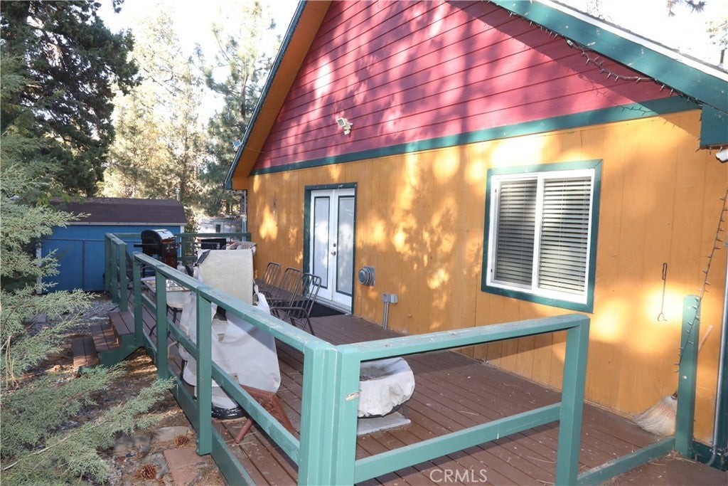 This 3 bedroom 2 bath home is conveniently located for easy access to hiking, biking, and outdoor activities. This mountain retreat has been well taken care of with a large kitchen connected to a living room and dining area. The master bedroom has a walk-in closet and a large double sink vanity. French doors from the master bedroom open up to a large Trex deck that spans the entire width of the home. Each room has its own heater and thermostat. The living room has a wood burning stove perfect for those weekend getaways. Convenient indoor laundry just off of the kitchen and a nice fenced front porch to enjoy the mountain air. This beautiful home is located just 10-15 minutes from downtown Big Bear. Most of the furniture is included with the property. Don't miss this one.
