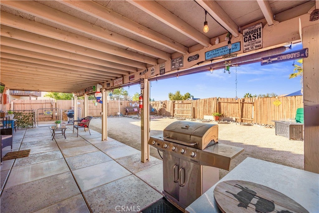 Welcome to this beautifully updated 3-bedroom, 2-bathroom home featuring a stylish blend of tile and wood-look vinyl flooring throughout. The spacious living room offers a cozy brick fireplace—perfect for relaxing evenings with family or guests. The updated kitchen boasts granite countertops, stainless steel appliances, and ample cabinet space, making it both functional and attractive. Enjoy the convenience of a private laundry room and a covered patio—ideal for outdoor dining or relaxing in the fresh air. Both front and back yards feature low-maintenance desert landscaping, adding to the home's curb appeal and easy upkeep. Located in a quiet, family-friendly neighborhood, this home is perfect as a first-time buy or an investment opportunity. Don't miss out on this move-in-ready gem!