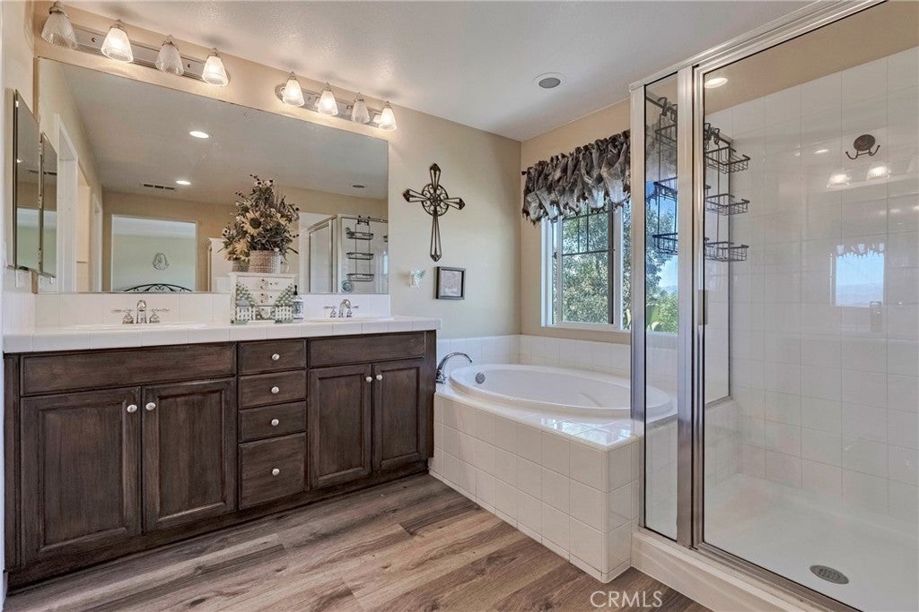 Welcome to 19639 Ellis Henry Court—a hillside masterpiece tucked inside the exclusive gated community of Canyon Gate in Newhall. This 4-bedroom, 3-bathroom Tuscan-inspired retreat spans approximately 2,476 sq. ft. of refined living space, blending timeless design with modern comfort. Step through the doors and instantly feel the warmth of this home’s Mediterranean soul—vaulted ceilings, Venetian plaster walls, and luxury waterproof wood flooring set the stage for everyday elegance. The open-concept kitchen is both stylish and functional, featuring quartz countertops, an oversized island with sink, recessed lighting, and a cozy breakfast nook framed by breathtaking 180° panoramic views of the Santa Clarita Valley. The living room, anchored by a beautiful fireplace, invites effortless gatherings and quiet evenings alike. Upstairs, the primary suite is your sanctuary—wake up to endless views that stretch across the valley and soak in the serenity that only hillside living can provide. Outside, the backyard becomes your private oasis, perfectly designed for entertaining or simply taking in the sunset. A dedicated laundry room adds convenience, while community amenities like secured gated entry and a sparkling pool enhance the resort-style feel. Located minutes from Golden Valley Plaza, top-rated schools, dining, and freeway access, this home offers both luxury and lifestyle. If you’ve been searching for a turnkey home with character, comfort, and unmatched views—you’ve found it. Welcome home to Canyon Gate.