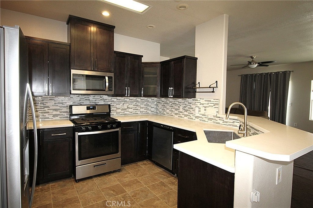 Super cute Cal City manufactured home on a permanent foundation and on a large corner lot is waiting for it's new owner!! Driving up you'll notice the huge side gate which would be perfect for storing an RV, trailer, or boat! The front of the home has some rock landscaping for lower maintenance plus a concrete driveway. This cutie is on Natural Gas too!! Step inside to an open floor plan with a spacious living room that features a sliding glass door to access the large side yard. There is a remodeled kitchen with Quartz counter tops with stainless appliances included & it overlooks a roomy dining area. The main bedroom is a generous size with a walk in closet plus the main bath offers dual sinks, a soaking tub, & stall shower. The 2 secondary bedrooms are comfortable sizes plus the hall bath has a tub-shower combo. You can access the 2 car garage from the indoor laundry room that includes the washer & dryer. This property is surrounded by wood fencing.