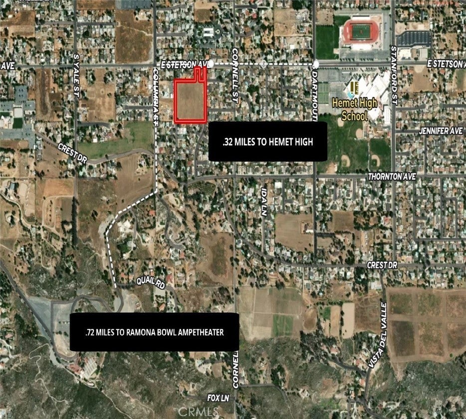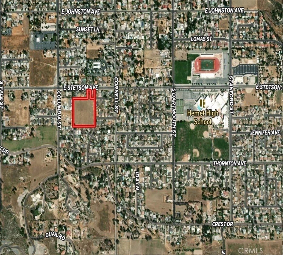 Utilities on the street per prelim, buyer to check. Exceptional development opportunity in the City of Hemet, CA! This 5.73-acre parcel is designated Medium Density Residential (MDR) and previously approved under Tentative Tract Map No. TR25628 for the subdivision of 5.86 acres into 15 residential lots plus one remainder lot, each with a minimum 7,200 sq. ft. lot size. The prior map demonstrates the property’s strong potential for a future single-family residential community. Situated in an established area with paved street access, nearby utilities, and close proximity to schools, parks, and shopping, this parcel offers excellent redevelopment or investment potential. Property Highlights: 5.73 acres within City of Hemet Land Use: MDR (Medium Density Residential 8.1–18 DU/AC) Prior Tentative Tract Map TR25628 approved for 15 residential lots + remainder Minimum 7,200 sq. ft. lot sizes under prior approval Paved access and utilities nearby (buyer to verify) Excellent location near schools, parks, and major corridors Ideal for builders, developers, or long-term investors Whether you re-entitle the previous map or propose a new residential layout, this property offers outstanding potential in one of Hemet’s most active growth areas.