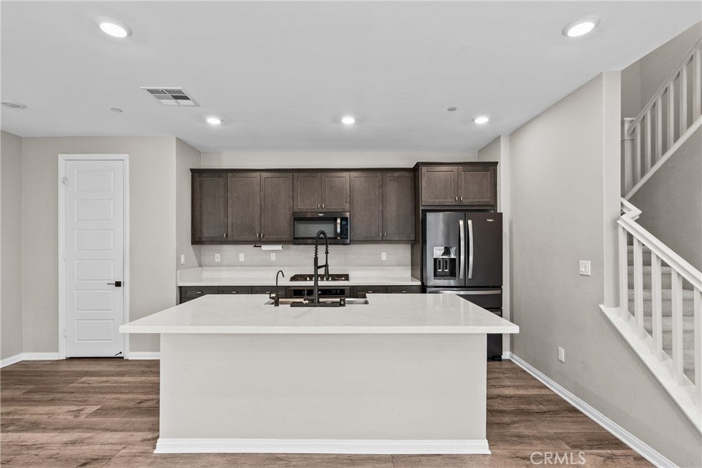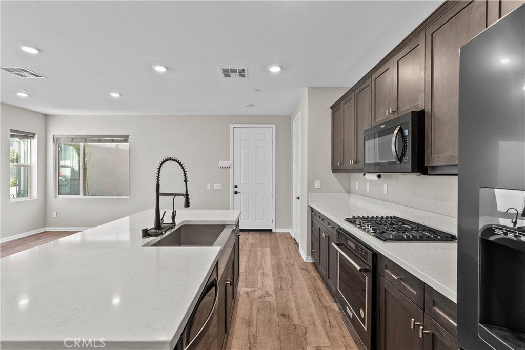 Now available for lease, 27004 Trail View Lane combines modern comfort with vibrant community living in the heart of FivePoint Valencia. This beautifully updated, fully detached home features brand-new flooring throughout and a spacious open-concept design, perfect for both everyday living and entertaining. The gourmet kitchen is appointed with quartz countertops, shaker-style cabinetry, a farmhouse sink, and a reverse osmosis water system. Bright and airy living spaces flow seamlessly, creating an inviting atmosphere throughout the home. The primary suite serves as a private retreat with a generous walk-in closet and an ensuite bathroom featuring dual sinks. Additional highlights include an attached two-car garage and owned solar panels, included with the lease to help offset electricity costs. For added convenience, the kitchen refrigerator, washer, and dryer are also included. Residents will enjoy direct access to Confluence Park, which offers resort-style amenities including three geothermal pools, cabanas, a clubhouse, playgrounds, and miles of scenic walking trails. Ideally located near top-rated schools, Six Flags Magic Mountain, premier shopping and dining, and with easy access to the I-5 freeway, this home presents an exceptional opportunity to experience the very best of Valencia living.