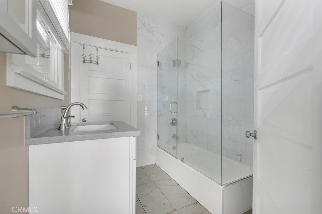 This quintessential 1911 Craftsman-style bungalow captures the spirit of early 20th-century architecture with its timeless design and inviting character. Featuring 2 bedrooms, 1.5 baths, and approximately 1,260 sq ft of living space, this home sits in a desirable San Pedro neighborhood known for its historic charm and convenient location. Original details, like wood siding, statement window casements and door jambs, decorative picture rails, and a stained-glass front door, evoke the warmth of its era, while thoughtful updates provide a comfortable blend of old and new. A covered front porch sets the tone for relaxed coastal living. The entryway offers period hardwood floors that flow throughout. The cozy living room features a brick fireplace, built-in storage, and a convenient passthrough to the kitchen. The updated eat-in kitchen showcases quartz counters, white shaker cabinets, wainscotting, and ample space for informal dining. Just off the kitchen, a utility room with laundry hookups and a half bath adds function and flexibility. Both bedrooms are generously sized with walk-in closets and share an updated Jack & Jill bath complete with quartz counters, tile flooring, and a classic tile surround. Out back, enjoy a spacious brick patio with a covered area ideal for entertaining or relaxing in privacy. A detached two-car garage with alley access offers parking and storage, or the potential to convert into a private ADU. This rare early-20th century gem offers the opportunity to embrace San Pedro’s historic character while customizing it to suit modern living, close to the harbor, freeways, and the exciting West Harbor waterfront development, with its future mix of dining, retail, and entertainment. A true blend of charm, potential, and location. Don’t miss out!