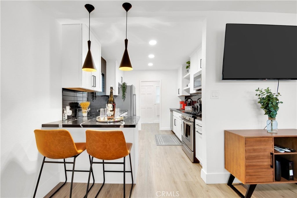 Welcome to this beautiful City Terrace gem that perfectly blends modern style with comfort. Impeccably maintained and ready for you to move in, this home showcases true pride of ownership. Step inside to find a sleek and stylish interior featuring contemporary decor and remodeled finishes throughout. The kitchen is a chef's dream, equipped with stainless steel appliances and elegant black marble-like countertops that seamlessly flow into the inviting living room. Here, you can unwind while enjoying breathtaking, unobstructed views of the city skyline. Both bathrooms have been thoughtfully updated with walk-in showers, chic laminate flooring, and newer vanities, offering a spa-like experience at home. Outside, the private backyard is your personal oasis, featuring a lush lawn and a covered patio—perfect for entertaining or simply enjoying quiet moments in nature. Don’t miss out on this stunning home in a vibrant community. Schedule your showing today!