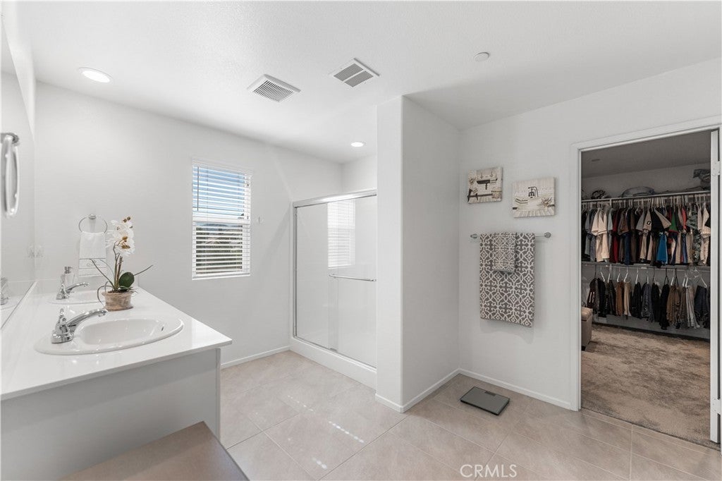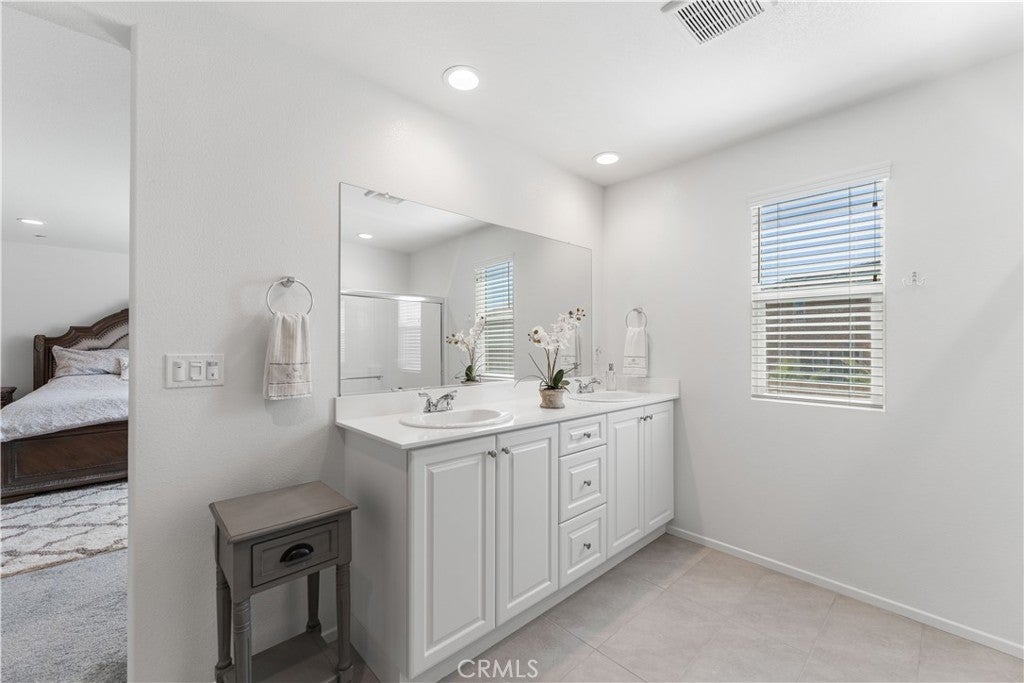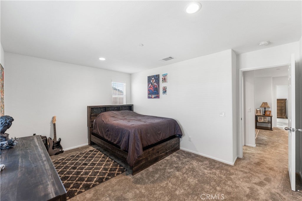Located in a newer neighborhood, this beautifully updated and meticulously maintained 2-story home offers space, style, and comfort throughout. Inside, you’ll find a functional layout featuring a downstairs bedroom and full bath—perfect for guests, in-laws, or a private home office. The kitchen is the true heart of the home, offering ample cabinet and counter space, a large center island for meal prep or entertaining, and a walk-in pantry with plenty of room for all your snacks and kitchen gadgets. The kitchen opens to a bright and inviting dining and living area, creating an easy flow for everyday living and gatherings. Upstairs are four additional spacious bedrooms, including a large primary suite with an ensuite bathroom and an oversized walk-in closet that provides all the storage you could need. Step outside through the double sliding doors to a low-maintenance backyard featuring custom concrete work, French drains, and a retaining wall lined with plants—already thoughtfully designed and ready to enjoy. The block fencing offers both privacy and a clean, modern look. With its thoughtful upgrades, open layout, and turnkey condition, this home is a standout in the neighborhood.
