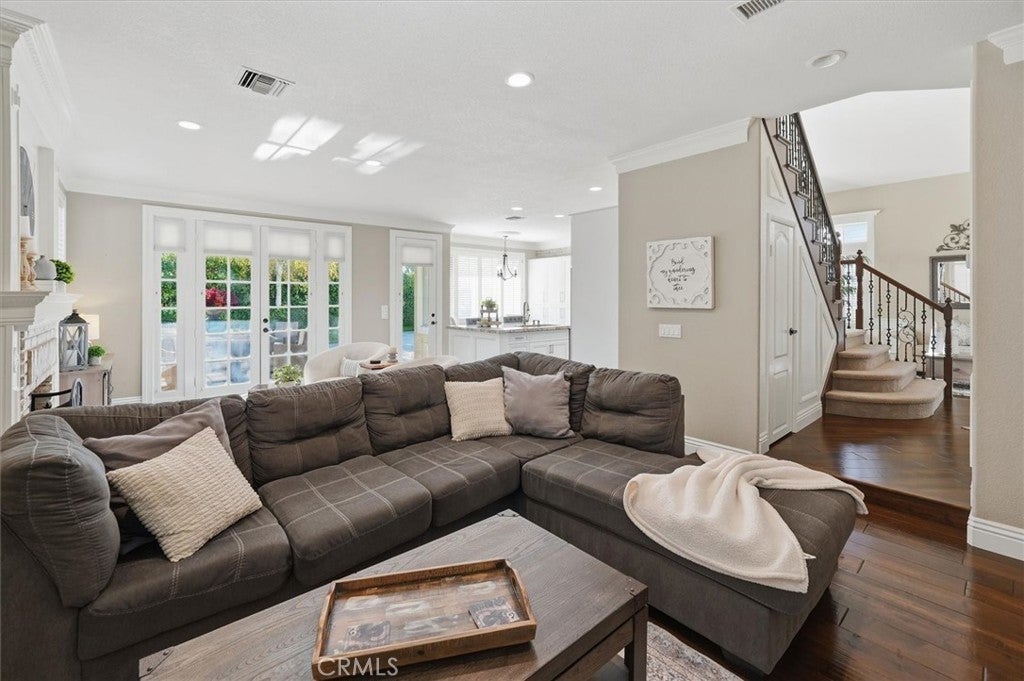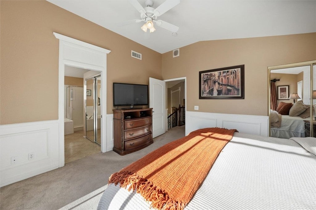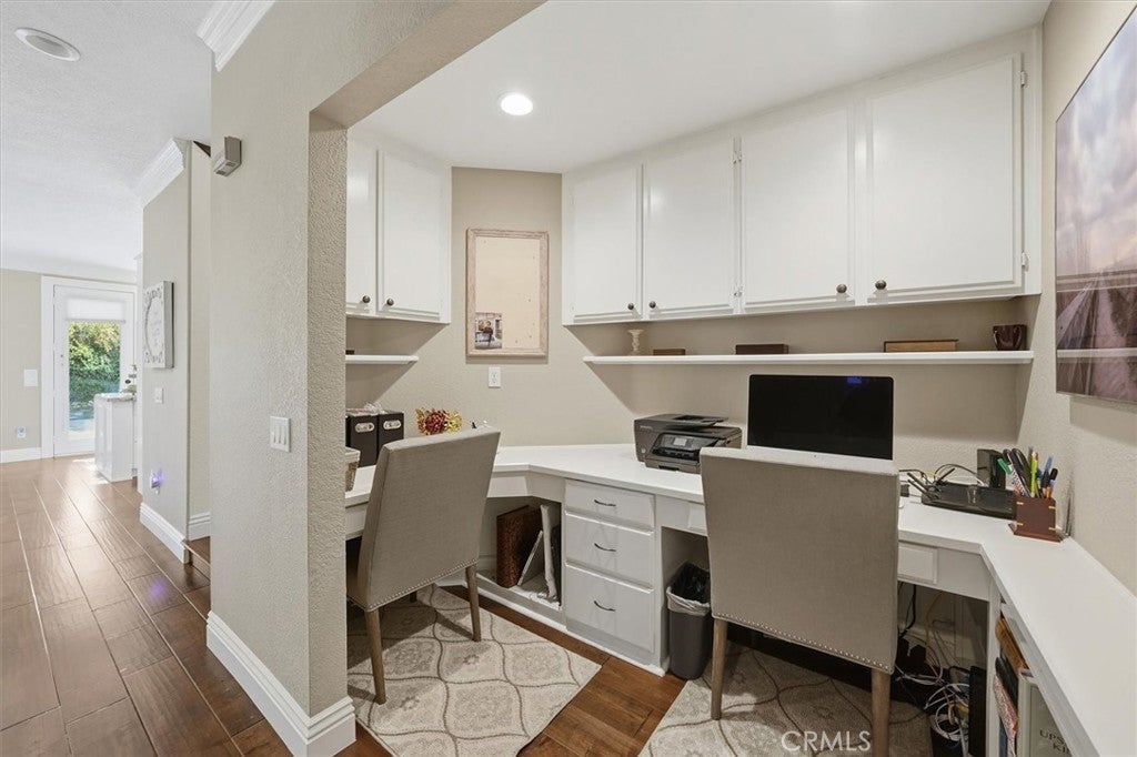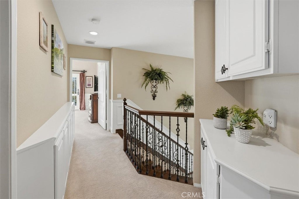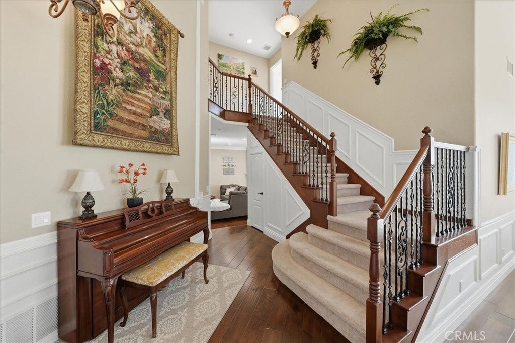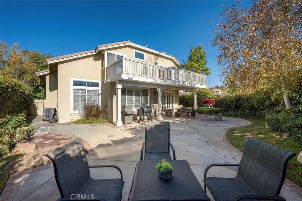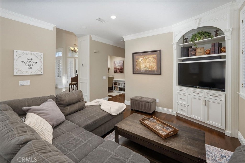 Welcome to this beautiful home in the highly sought after Northbridge Valencia neighborhood. Nestled on a quiet cul-de-sac, offering comfort, functionality, and style throughout, featuring 3 spacious bedrooms, 3 full bathrooms, and a 3-car garage(one car garage converted into an office with heating and A/c, can easily be removed) this home is perfect for both relaxing and entertaining. Step inside to find high ceilings, upgraded wood flooring, elegant crown molding and baseboards, shutters, and a striking banister that adds character to the home. The inviting layout includes a formal living room, dining room, and an open-concept super family room with a cozy fireplace and built-in office nook—ideal for work or study. The gourmet kitchen is a chef’s dream, featuring white cabinetry, granite countertops, stainless steel appliances, a large center island with bar seating, and an in-kitchen eating area that flows seamlessly into the family room. Upstairs, the primary suite offers a private retreat, a balcony with mountain views, and an ensuite bathroom complete with double sinks and a walk-in closet. Two additional upstairs bedrooms include ceiling fans and share a well-appointed full bathroom with double sinks and a shower/tub combo. Enjoy outdoor living in the neatly landscaped backyard featuring a covered patio with recessed lighting and a ceiling fan—perfect for relaxing or entertaining year-round. With low HOA and no Mello-Roos – enjoy added savings and peace of mind. HOA includes pools, spas, tennis courts, paseos and a clubhouse Conveniently located near parks, award winning Helmers elementary school (see website for a list of all the awards) shopping, and dining. This turnkey home offers the perfect blend of comfort, style, and location — don’t miss out!