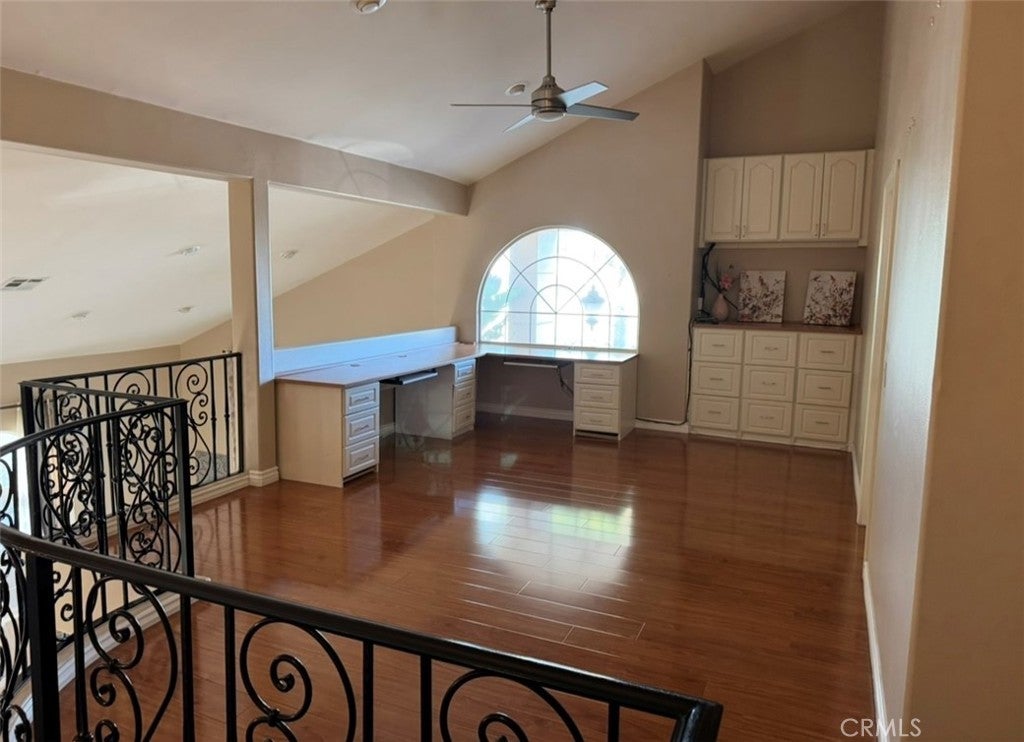 This 5 bedroom, 4 and half bath home in great area of Northridge. Well maintained front lawn invites you to the formal entry. Large living room has wrought iron staircase rises to vaulted ceilings that leads to the living room and dinning room. For entertaining, nothing could be cozier than the double sided fireplace. The dinning room leads to eat-in kitchen. Upgraded granite counter tops, stainless steel appliances, and plenty of storage. The kitchen opens to the large family room that leads to backyard. Downstairs Full bedroom and bathroom. Upstairs bright and spacious loft having built-in desks and cabinets. This space loft makes Great play area. Master bedroom suites has its own bath.