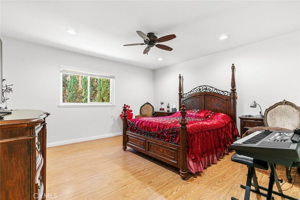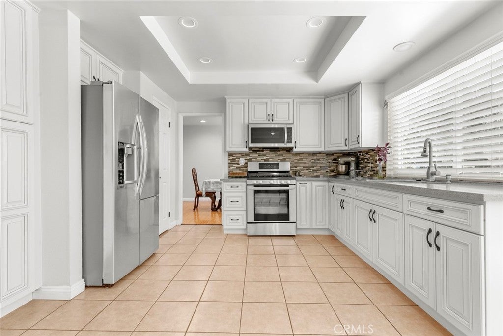 Welcome to this stunning 4-bedroom, 3-bathroom two-story home nestled in a serene and sought-after neighborhood near the base of Bouquet Canyon. With 2,071 square feet of thoughtfully designed living space, this beautifully updated home offers the perfect blend of comfort, style, and flexibility. Step inside to discover a home full of modern upgrades, including laminate flooring throughout (no carpet), freshly painted walls, new window shades, and recessed lighting in every room. Dual-paned, energy-efficient windows invite an abundance of natural light into the entire home. The fully renovated kitchen is truly a showstopper, wide, spacious, and bright, with numerous large windows and plenty of counter space, perfect for both everyday meals and entertaining. The living room features a cozy fireplace and an inviting atmosphere for gatherings. Upstairs, you’ll find all four bedrooms, including a spacious primary suite with a walk-in closet and a completely remodeled en-suite bathroom. One of the secondary bedrooms was originally two separate rooms and still features two doors, two closets, and two windows offering the potential to easily convert it back into a fifth bedroom if desired. Downstairs, you’ll find the third bathroom with a brand-new vanity, ideal for guests or daily convenience. Enjoy a generous backyard retreat adorned with fruit and decorative trees, plus a private spa where you can relax and unwind. The front yard has been thoughtfully designed with drought, tolerant landscaping for beauty and water efficiency.Additional highlights include a large attached garage, two-story layout with all bedrooms upstairs, and a quiet, family-friendly neighborhood close to top-rated schools, scenic parks, and all the outdoor recreation Santa Clarita has to offer. Best of all, this home has no HOA fees and no Mello-Roos taxes — keeping your monthly costs lower and your freedom greater. This move-in ready home offers flexibility, upgrades, and space — all in a peaceful, desirable location.