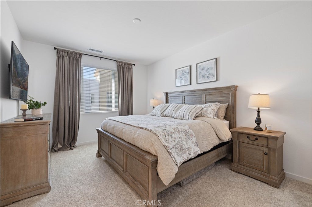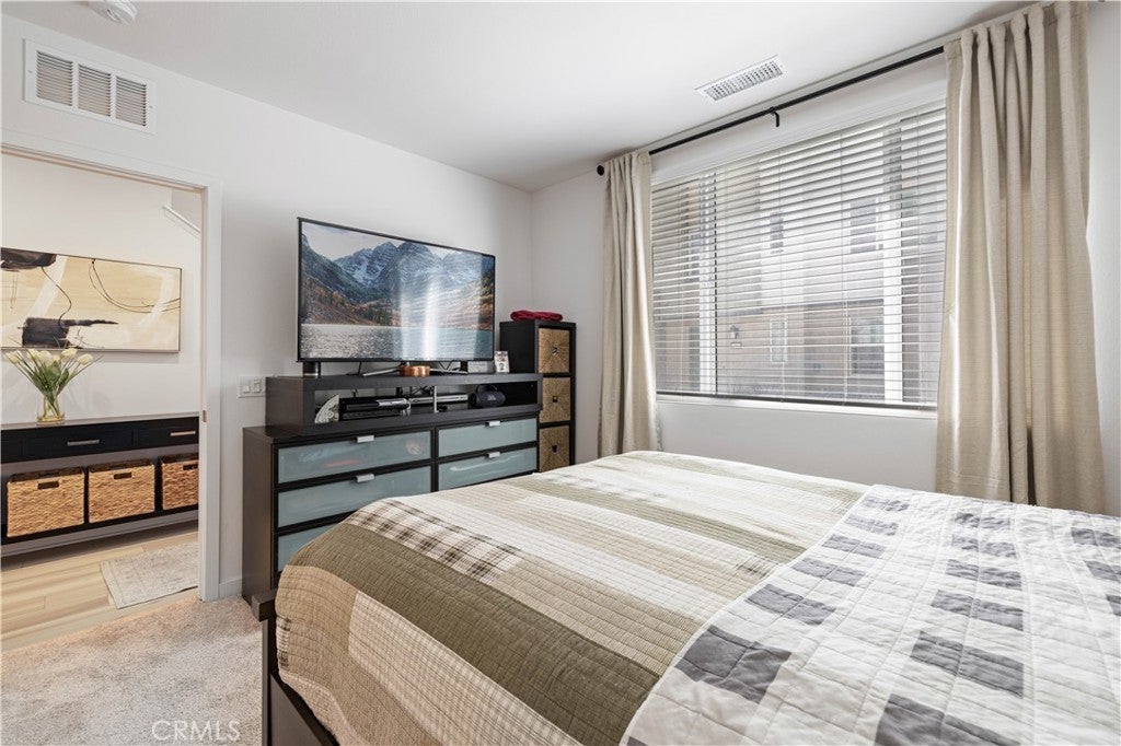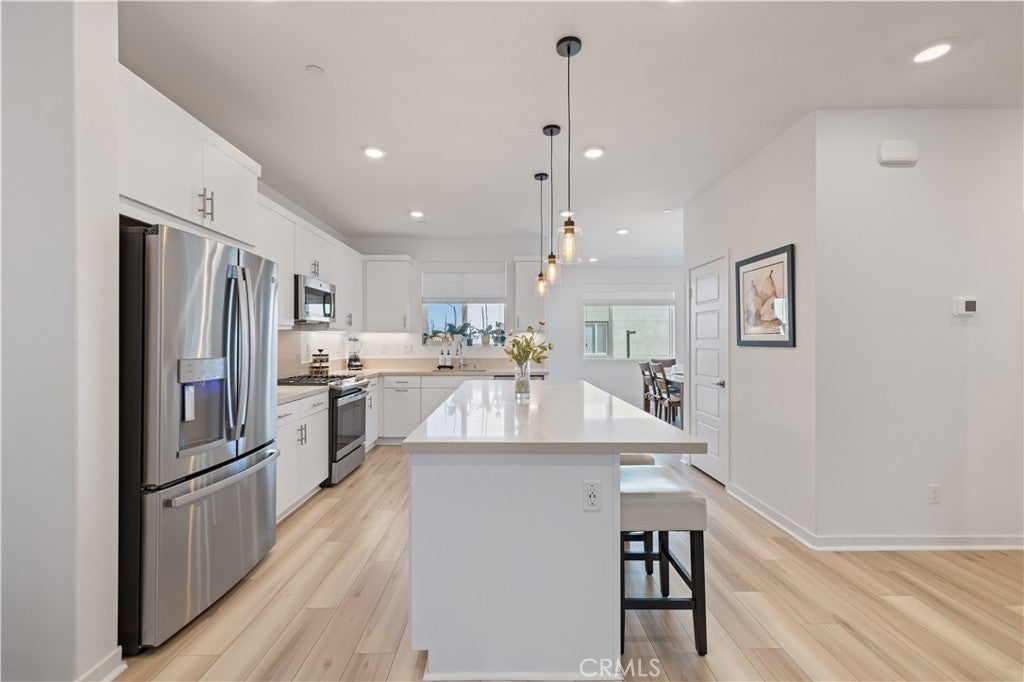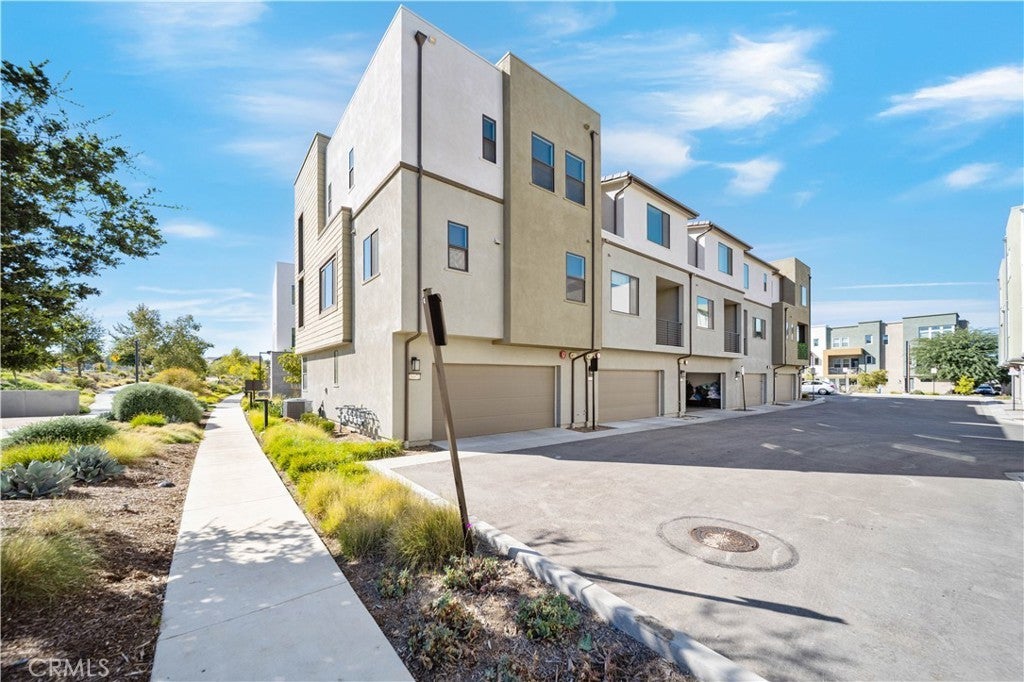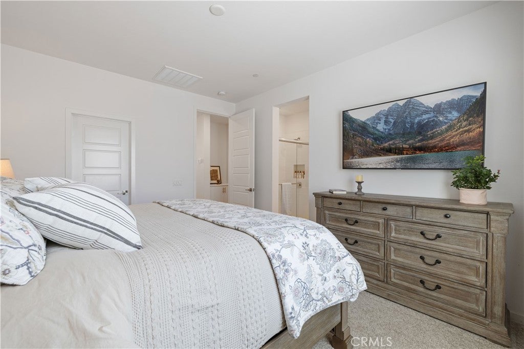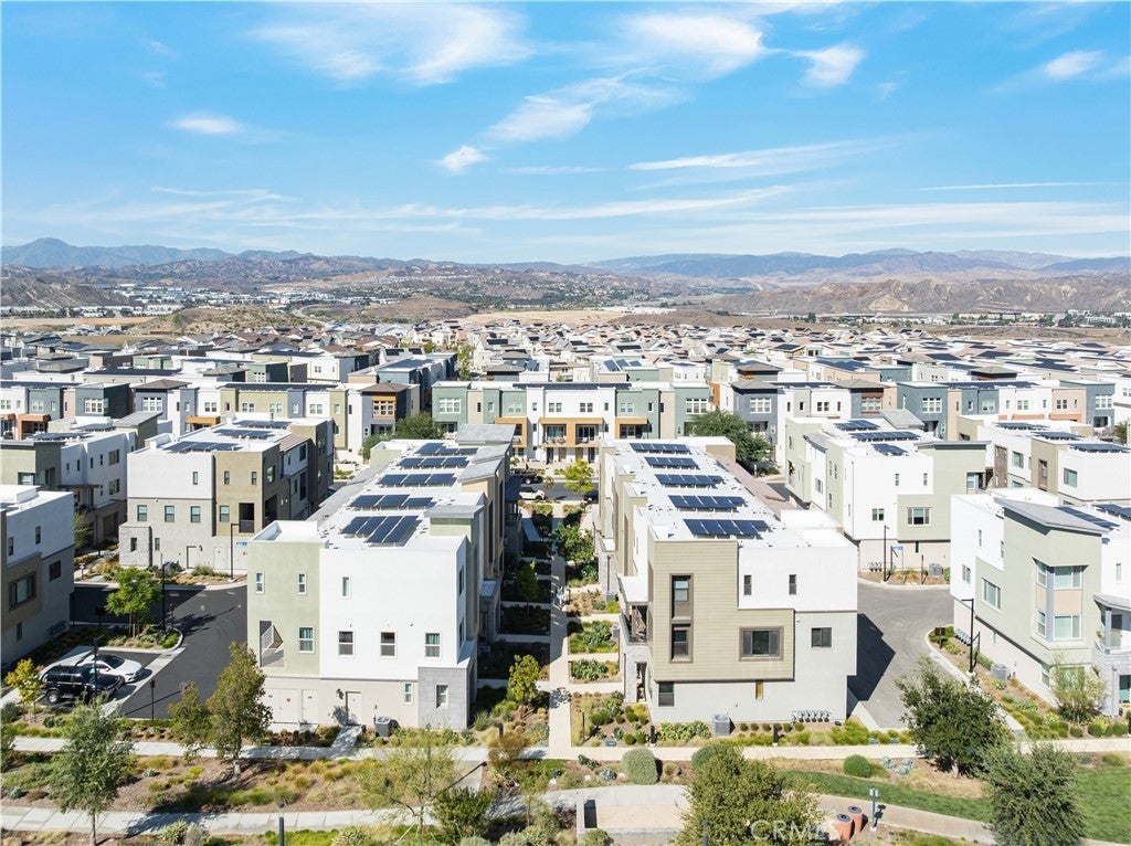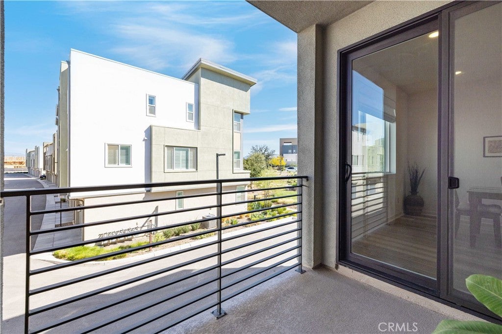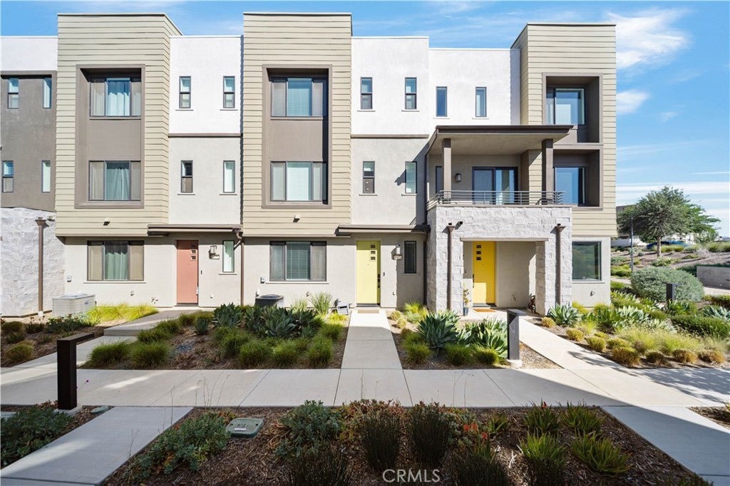 Popular Calla Plan 2 townhome located in the beautifully designed FivePoint Valencia community. This stylish 3 bedroom, 4 bath residence combines modern design with thoughtful functionality across three spacious levels. The entry level welcomes you with a spacious foyer and a private ensuite bedroom with a large walk-in closet, perfect for flexible use such as a guest retreat or home office. The main living area features an open-concept layout filled with natural light, showcasing upgraded LVP flooring, a sleek kitchen with Quartz counters, GE appliances, and an expansive island ideal for entertaining or casual dining. The living and dining areas flow seamlessly to a private balcony, creating an easy indoor-outdoor lifestyle where you can enjoy fresh air and views. A convenient powder room completes this level. The third level includes the spacious primary suite with large walk-in closet and a beautifully appointed ensuite bath, plus an additional bedroom with its own ensuite bath. The laundry room is conveniently located on this level for ease and function. Additional features include upgraded LVP flooring, upgraded carpeted upper level, tankless water heater, EV charging system, and smart home technology for energy efficiency. Ideally located across from Verve Park, residents can enjoy open green space, modern playgrounds, outdoor fitness stations, and library. This thoughtfully planned community provides access to multiple scenic trails, bike paths, neighborhood electric vehicle routes, Eastlink Park, Confluence Park and community pools creating an exceptional outdoor lifestyle.