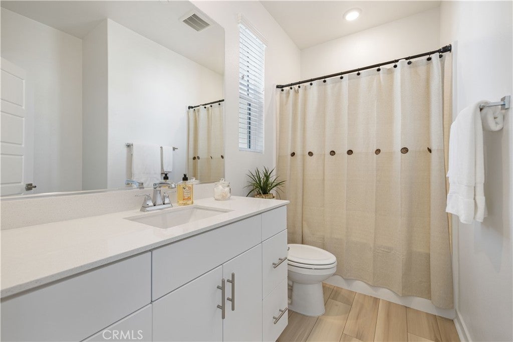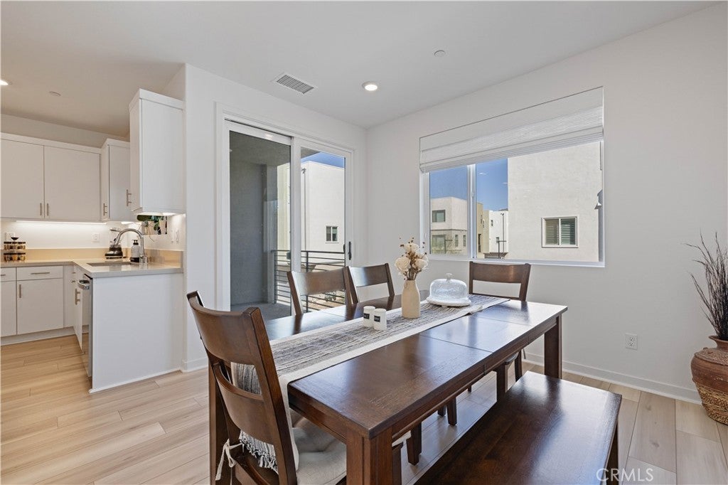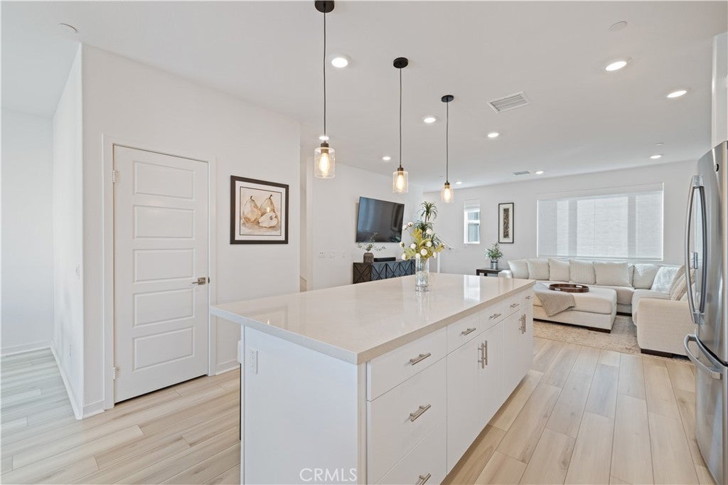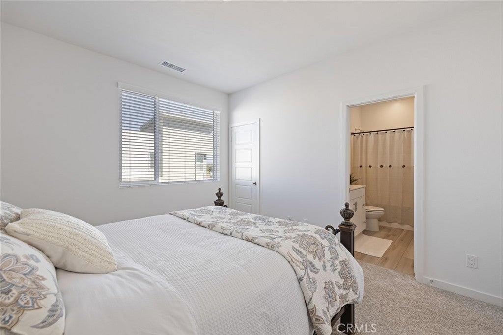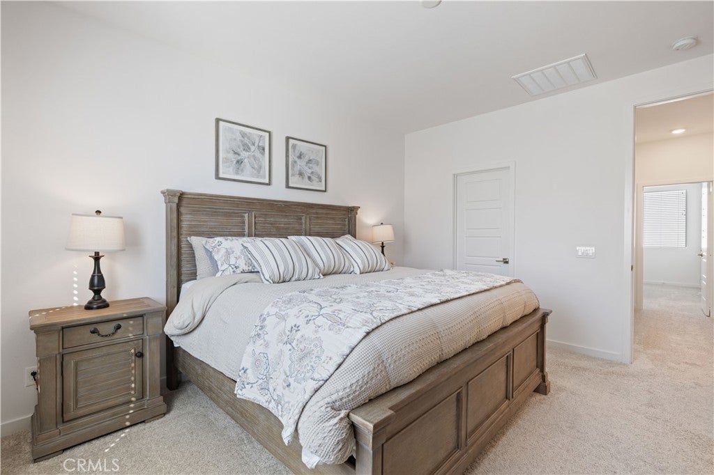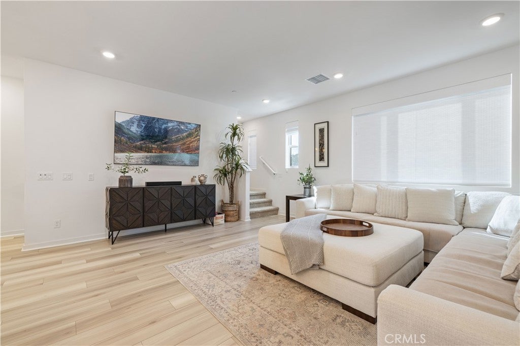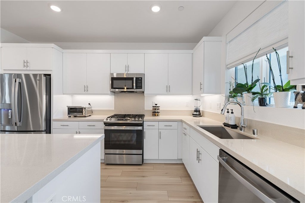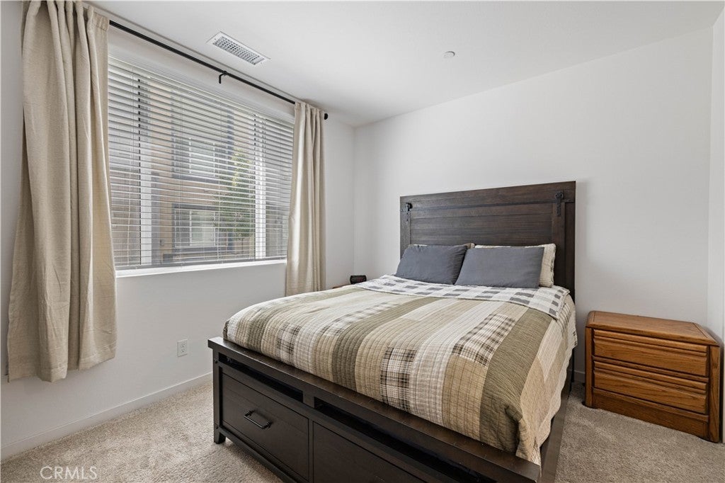 Popular Calla Plan 2 townhome located in the beautifully designed FivePoint Valencia community. This stylish 3 bedroom, 4 bath residence combines modern design with thoughtful functionality across three spacious levels. The entry level welcomes you with a spacious foyer and a private ensuite bedroom with a large walk-in closet, perfect for flexible use such as a guest retreat or home office. The main living area features an open-concept layout filled with natural light, showcasing upgraded LVP flooring, a sleek kitchen with Quartz counters, GE appliances, and an expansive island ideal for entertaining or casual dining. The living and dining areas flow seamlessly to a private balcony, creating an easy indoor-outdoor lifestyle where you can enjoy fresh air and views. A convenient powder room completes this level. The third level includes the spacious primary suite with large walk-in closet and a beautifully appointed ensuite bath, plus an additional bedroom with its own ensuite bath. The laundry room is conveniently located on this level for ease and function. Additional features include upgraded LVP flooring, upgraded carpeted upper level, tankless water heater, EV charging system, and smart home technology for energy efficiency. Ideally located across from Verve Park, residents can enjoy open green space, modern playgrounds, outdoor fitness stations, and library. This thoughtfully planned community provides access to multiple scenic trails, bike paths, neighborhood electric vehicle routes, Eastlink Park, Confluence Park and community pools creating an exceptional outdoor lifestyle.