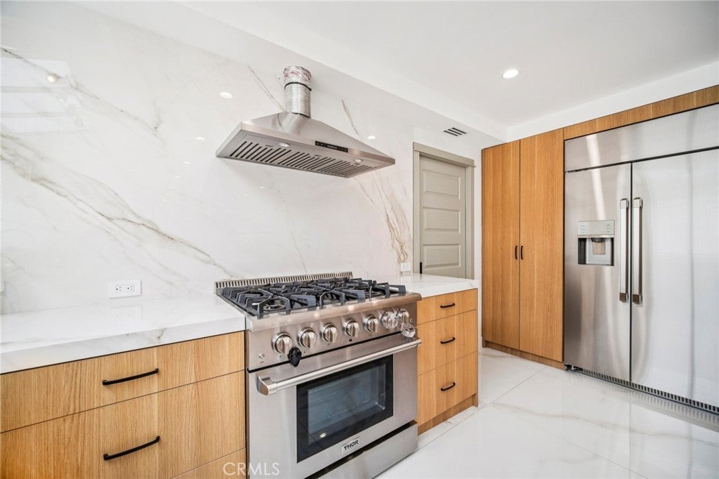 • AppliancesSixBurnerStove, Dishwasher, Disposal, Gas Range, Refrigerator, Range Hood, Water To Refrigerator