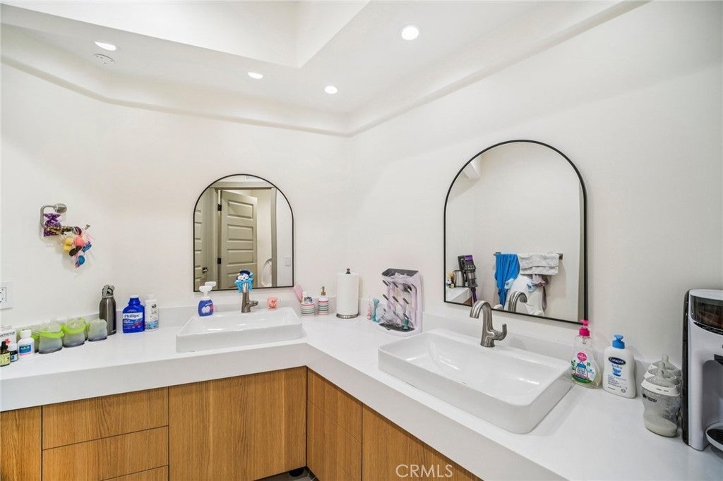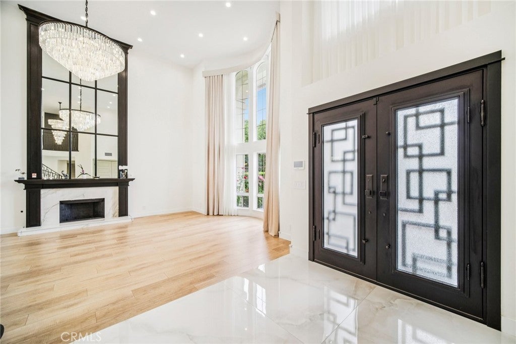Porter Ranch Estates Finest!!! Where Luxury meet Elegance, located in one of the most Prestigious Guard Gated communities in Porter Ranch (The Porter Ranch Estates). Walk through the custom double rod irons doors and be amazed what this true beauty has to offer. Featuring 4 bedrooms and 3 updated baths with just under 4000 sqft of living space. The grand foyer leads you to the formal living room with fireplace and soaring high ceilings, formal dining room, one of a kind fully remodeled custom Chef's kitchen with huge center island and built-in stainless steel appliances opens to the large family room with second fireplace. Take to grand stairs up to find the primary suite with private balcony, walk-in closet with custom built-ins and a spa like luxurious primary bathroom featuring dual vanity, large shower and a soaking tub. Huge theater room features premium surround sound and a cozy fireplace. Additional features include dual pane windows, security cameras, updated central A/C and heat, copper plumbing, large private back yard with newer pavers and so much more. The 24/7 guard gated community features resort style amenities including two pools, a spa, playgrounds for kids, basketball and volleyball courts and six tennis courts. Conveniently located, just minutes to the newly opened Porter Ranch community park, The Vineyards at Porter Ranch featuring premier shopping, dining and entertainment.