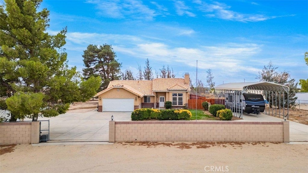 Welcome to Antelope Acres! Enjoy the peace and serenity of country living on this beautiful 2.5-acre fully fenced property, perfectly set up for a small farm and ready for your animals. This spacious 3-bedroom, 2-bath home offers 1,993 sq. ft. of comfortable living space and is move-in ready with fresh paint, new carpet, water softner and newer owned solar panels for energy savings. Inside, you'll love the open floor plan connecting the kitchen, dining, and family room — complete with a cozy wood stove — as well as a separate living room featuring a charming brick fireplace. The large master suite includes an additional sitting area, perfect for relaxing. The kitchen is equipped with newer appliances, making it both stylish and functional. Outside, the property shines with multiple sheds, a tack room, 2 horse corrals, round pen, 2-car metal shop, chicken coops, and an RV cover with separate septic hookup for guests. Enjoy mature trees, wide-open views, and the convenience of an automatic gate opener. This Antelope Acres gem offers the perfect blend of comfort, space, and country charm — all within reach of town conveniences. Don't miss this one!