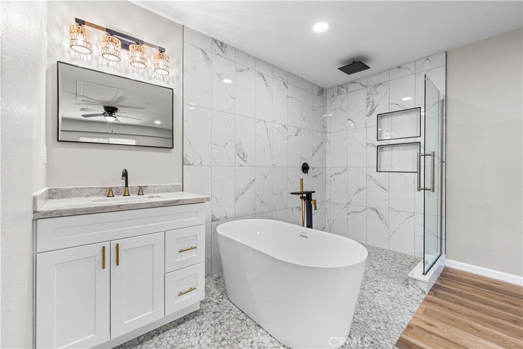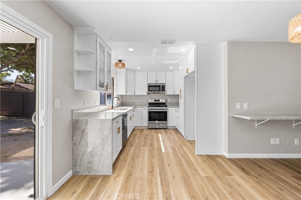Step into this newly updated pool home where modern comfort meets thoughtful design! Featuring an open floor plan, two master bedrooms, and luxury finishes throughout, this home delivers the perfect blend of style and functionality from the moment you walk in. The bright and inviting layout seamlessly connects the living, dining, and kitchen areas—ideal for entertaining or everyday living. The updated kitchen shines with sleek countertops, modern cabinetry, and ample storage, making it perfect for any cooking enthusiast. This home boasts two master suites, including a luxury-style primary bedroom with a spa-inspired bathroom for ultimate relaxation. Each bathroom has been tastefully upgraded with contemporary fixtures, while every bedroom offers a warm and peaceful retreat with abundant natural light. Smart upgrades include new attic ducting and upgraded copper plumbing, providing added comfort and long-term value. Step outside to your private backyard oasis featuring a sparkling pool, perfect for summer fun, family gatherings, or relaxing under the sun. The spacious yard and patio offer plenty of room for outdoor living at its best. Located in a desirable neighborhood, this incredible property brings together modern upgrades, indoor-outdoor living, and true California comfort. Welcome home!