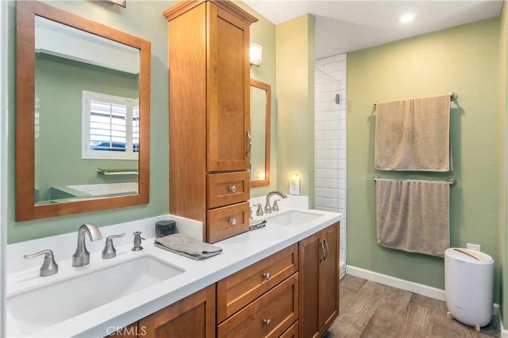 Beautifully Remodeled 2-Bedroom+Loft Townhome with Modern Upgrades & Outdoor Patio Living Space. Welcome to this stunning two-story townhome offering over 1,200+ square feet of stylish and thoughtfully updated living space. Featuring 2 spacious bedrooms plus a versatile loft, and 2 remodeled bathrooms, this townhome blends comfort, functionality, and modern appeal. Step inside to discover an open and inviting layout with high ceilings, new ceramic tile flooring throughout the downstairs living areas and fresh carpet in the upstairs bedrooms, loft, and stairway. The living room showcases a newly refaced fireplace with a custom mantle and built-in TV nook with surround sound—perfect for cozy evenings at home. The kitchen is a chef’s dream, boasting new quartz countertops, stainless steel range cooktop & microwave, loads of cabinetry, recessed LED lighting and has quick access to the laundry area and two car garage. There is a dining are off the kitchen and overlooks the tranquil cozy patio nestled in the back of a townhome, it’s a private little retreat enclosed by a wooden fence, lush potted plants and a charming water fountain that adds a gentle trickling sound for a peaceful ambiance. Upstairs in the master bedroom, you have 2 barn doors that add character to the master bathroom and walk-closet entries, while upgraded baseboards and a wood accent wall elevate the home's charm. Both bathrooms have been beautifully remodeled. The upstairs bath features ceramic tile flooring, upgraded cabinetry, a new tub, and a stunning shower renovation. Additional upgrades include, plantation window shutters, fresh paint and smooth ceilings throughout the home, full copper re-piping, popcorn ceiling removal and fresh paint throughout, new ceiling fans (phone app controlled), new A/C and heating system, replaced water heater, exterior & interior security camera system with remote garage access, repainted and rebuilt backyard patio, perfect for outdoor entertaining, keyless Nest door entry lock and hard-wired Nest doorbell. This townhome is move-in ready with every detail thoughtfully attended to. Whether you’re relaxing in the serene backyard patio or enjoying the stylish interiors, this townhome offers the ideal blend of comfort, security, and contemporary design. Close to everything in Santa Clarita, minutes to Downtown Newhall or minutes to the 5 freeway, this property checks all the “Buy me” boxes. Don't miss this rare opportunity!