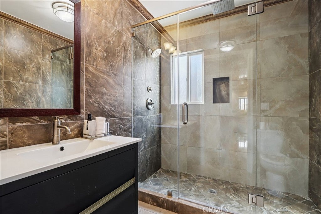 Located in highly desirable neighborhood of Valley Glen just a block down from Sherman Oaks this beautifully remodeled gated home is ideal for buyers looking for a move in condition home or investors looking to add additional units in the back. Zoned R1.5 which allows additional two units in the back(buyers to verify). Home features 3 bedrooms and 2 baths with garage converted into a bonus room/game room/guest unit with full bath, updated kitchen with granite counters and stainless steel appliances, large master bedroom with walk in closed, master bath with dual sink, shower and tub. Crown moldings and recessed lighting throughout. Large back yard with many fruit trees and so much more.