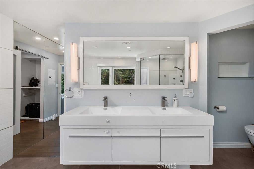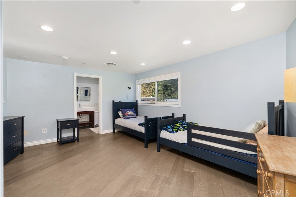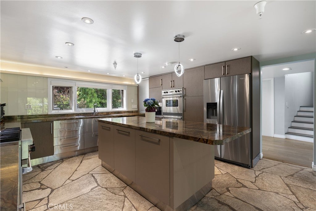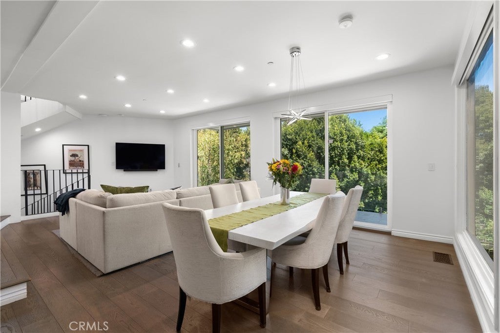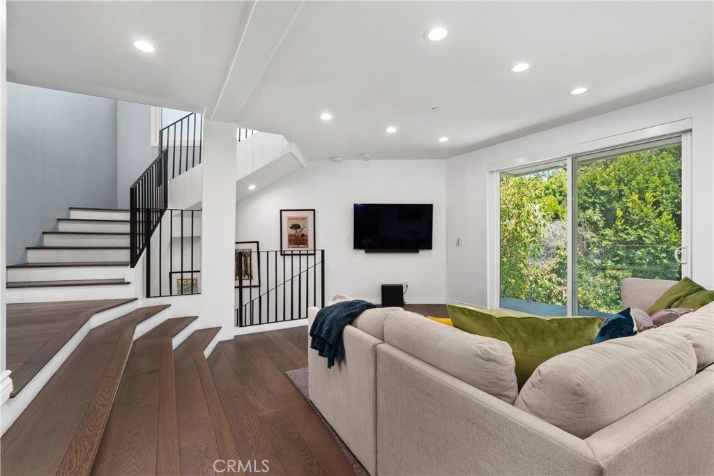 Nature lovers will feel at home in this striking modern retreat where walls of glass frame serene treetop views, creating seamless indoor-outdoor living across nearly 3,100 sq ft of contemporary design. The location on Hollywood’s Prime Celebrity Row—a destination known for privacy, prestige, and proximity to the Sunset Strip—is a great plus. Floor-to-ceiling glass walls blur the line between indoors and outdoors. Nearly 3,100 sq ft of airy, light-filled living space flows seamlessly to expansive decks—perfect for savoring sunset skies or hosting starlit gatherings. The primary suite feels like a retreat in the clouds, complete with a spa-inspired bath, custom walk-in closet, and a private balcony suspended among the trees. Outside, a flat backyard with a koi pond and turf lawn creates a peaceful, low-maintenance oasis, with room to add a pool or spa if desired. Direct access to Runyon Canyon trails means hiking adventures start at your doorstep. Additional features include wide-plank oak floors, smart-home technology, new HVAC, elastomeric roof coating, and an 8-camera security system. With parking for five cars, this home offers the ultimate blend of natural beauty, modern design, and Hollywood Hills prestige.
