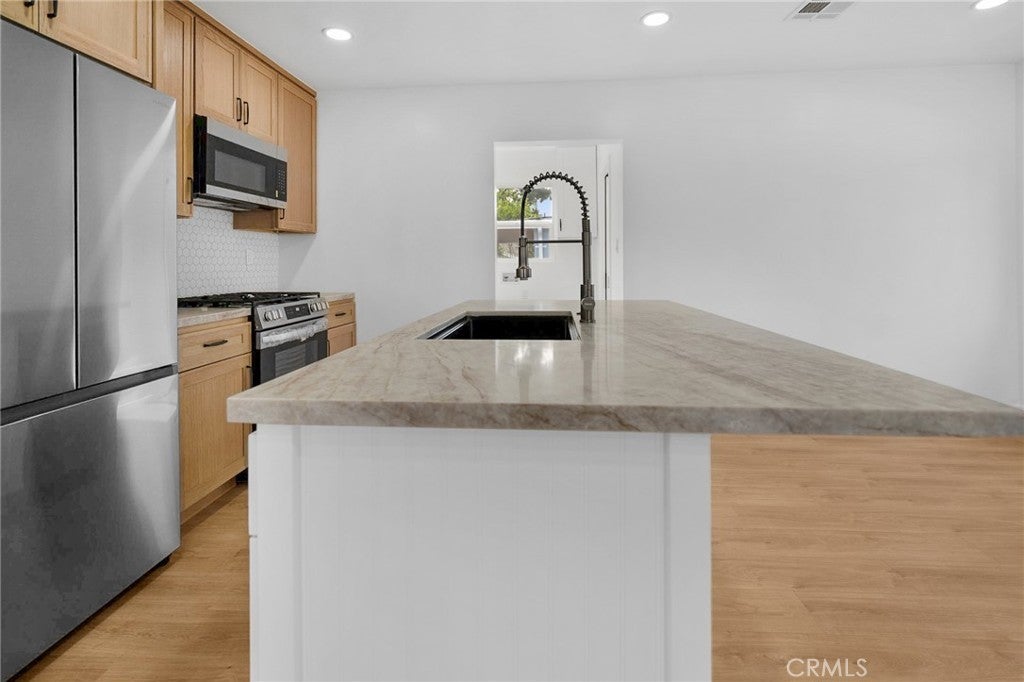 SIGNIFICANT PRICE REDUCTION OF $27,000. ATTENTION TO DETAIL! Every aspect of this property has been improved. All surfaces have been upgraded, and all the systems are new. A remodeled kitchen with brand-new SS appliances, quartz countertops, a massive island with seating for four, and new plumbing and electrical fixtures serves as the hub of this home. An open-concept dining room stands adjacent to the living room offering a wood-burning fireplace and recessed lighting. Scratch resistant laminate runs throughout the house and to three bedrooms that each have ceiling fans with remotes. The primary bathroom has a brand-new tub and tub surround, along with a new vanity highlighted with wainscotting. The secondary bathroom offers a new shower, new fixtures, and a sliding-mirrored-pocket door. The separate laundry room provides hook-ups for the washer/ dryer and leads to the fully landscaped backyard. IN THE BACKYARD YOU WILL FIND A NEW, BEAUTIFUL ADU which can be used for extended family or additional rental income. This 1/1 guest house is complete with the same finishes as the main house and has laundry hookups on the covered porch. Again, all the systems on this listing are UPGRADED. 11225 Acala offers the following: new vinyl-double-paned windows, new HVAC, new mini split in ADU, new electrical panel and wiring throughout the house, new supply and drain lines, new recessed lighting, efficient on-demand water heaters, new stucco, and new interior and exterior paint. 11225 Acala is located in culturally rich community of San Fernando and offers easy access to freeways, parks, schools, and restaurants. Whether you’re a first-time buyer, an investor, or someone looking for a property in which your family can grow roots, this San Fernando home presents an excellent opportunity to create value in one of the San Fernando Valley’s most historic neighborhoods. Come see what 11225 Acala has to offer. It's a great home.