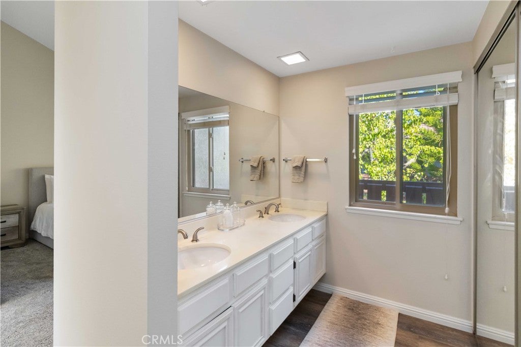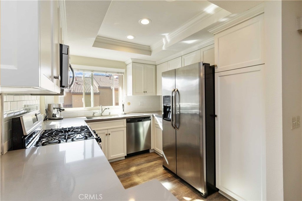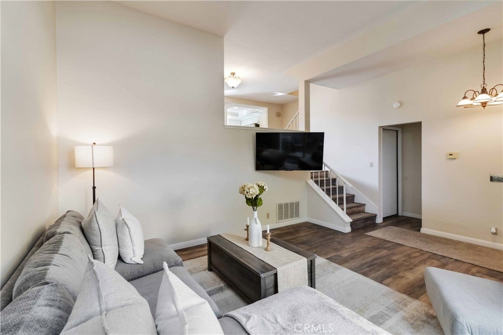 Welcome to 2421 Chandler Avenue, Unit 2 – a beautifully updated tri-level townhome in the highly sought-after Broadmoor Village Community of Simi Valley. Ideally situated in a peaceful corner of the community yet just steps from the pool, this home strikes the perfect balance between quiet comfort and convenience. A charming, tree-lined pathway leads you to the private front gate and spacious patio – the perfect spot to unwind or entertain. Step inside to a bright and inviting living room with sliding glass doors that open to the patio, creating seamless indoor-outdoor flow. This main level also features a convenient powder bathroom and direct access to the garage. Up just one short flight of stairs, you’ll find a stylishly updated kitchen with quartz countertops, stainless steel appliances, and ample cabinetry. The adjacent dining/family area features a cozy fireplace and a private balcony – ideal for morning coffee or evening relaxation. The top floor includes two spacious primary en-suite bedrooms, each with its own private bathroom. One suite boasts an additional private patio balcony. The upper landing features a wall of built-in cabinets for excellent storage, and the attached two-car garage includes a full-size washer and dryer along with plenty of additional storage space. Enjoy the resort-like community amenities, including a sparkling pool and spa. All this, plus easy access to top-rated schools, scenic parks and hiking trails, recreation centers, shopping, dining, and nearby freeway access. A wonderful opportunity to own a beautifully maintained home in one of Simi Valley’s most desirable communities!