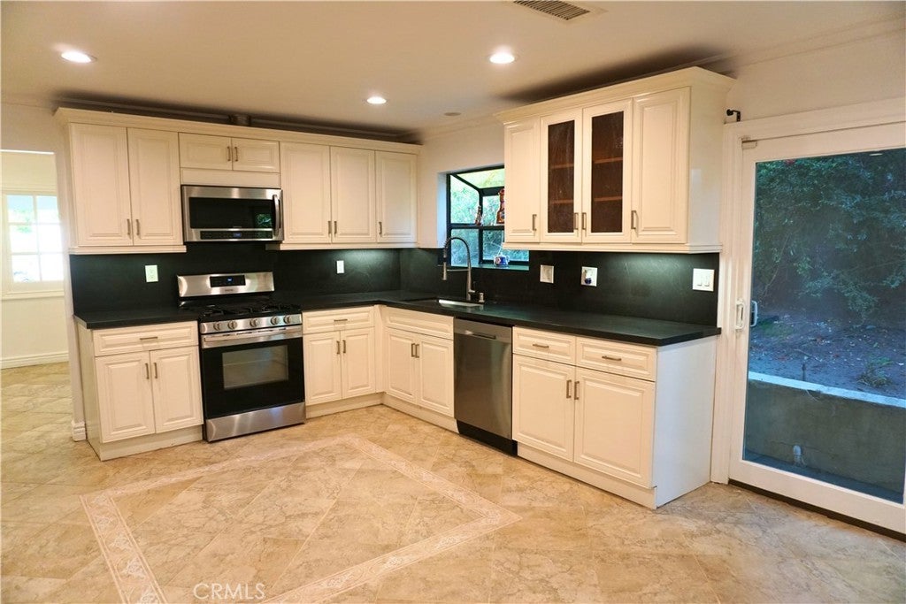 Welcome to this bright and expansive home featuring an open floor plan, dramatic vaulted ceilings, and skylights that flood the space with natural light. With 5 spacious bedrooms, 4 bathrooms, and a bonus room, this home offers versatility and space for any lifestyle. Enjoy the luxury of two master suites, one with a full STEAM SHOWER each boasting large walk-in closets. The upstairs master is ideal as a private in-law unit, complete with panoramic valley views—the perfect setting to enjoy fireworks and sunsets. Unwind in the spa-like master bath, complete with a steam sauna designed to melt the stress away. The main living areas feature stylish tile flooring, while the bedrooms offer the warmth of hardwood. The seamless indoor-outdoor flow leads to an entertainer’s backyard with a covered patio, sparkling heated pool, fire pit, and built-in skylights for year-round enjoyment. Located within the highly sought-after El Camino Real Charter High School district (LAUSD), this home checks all the boxes for comfort, convenience, and luxury. IMPORTANT: Please note these photos are not the current state. Home has gone under minor renovations after previous tenants moved out. Home is virtually staged. Kitchen counters have been replaced.
