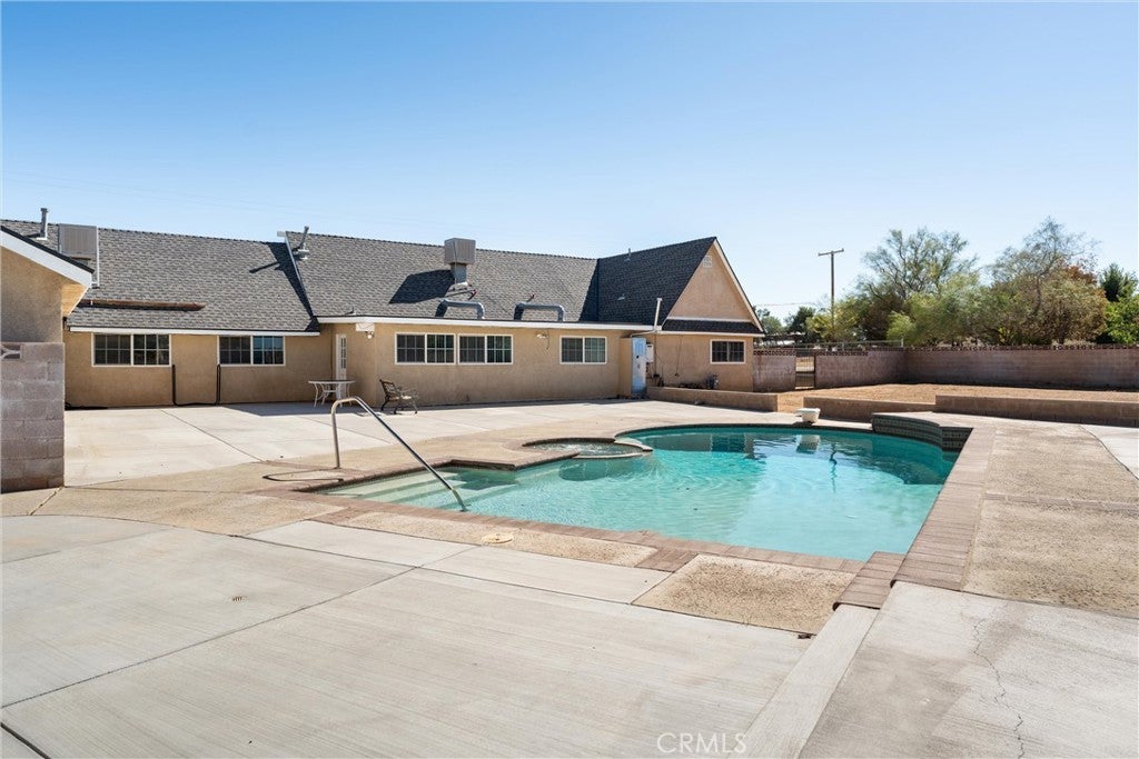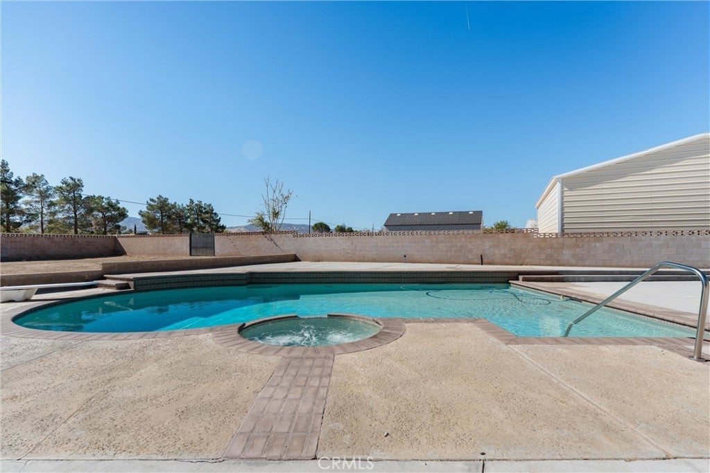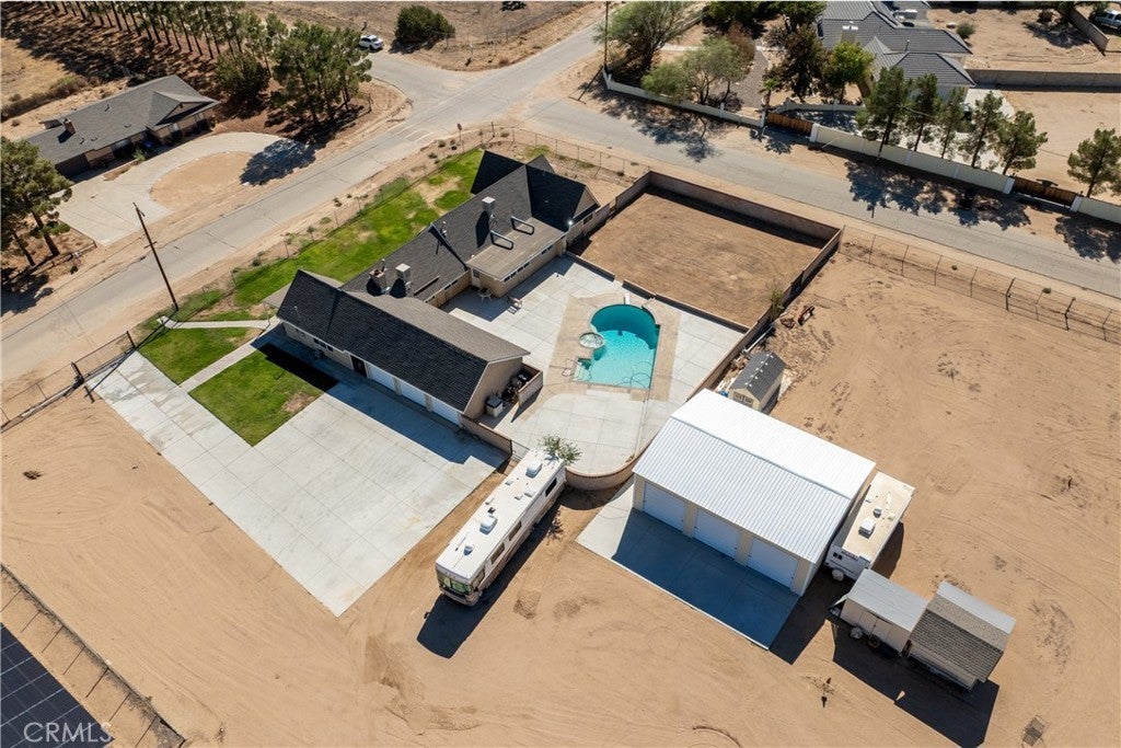 El Dorado Ranch POOL Home with large new shop/building. 2.5 Acre corner lot that is fully fenced. Large amount of solar panels ensure low electric bills! New large metal building/shop with roll up doors. Large concrete driveway to garage and shop. Additional sheds. 3 car garage. House has 5 bedrooms and 3 bathrooms. Over 2200 SF with large open living room and kitchen. Underground/basement wine cellar. Indoor laundry room. Crossed fenced with a brick wall back yard with inground pool and spa. West Palmdale close to AV Mall area and freeway access.
