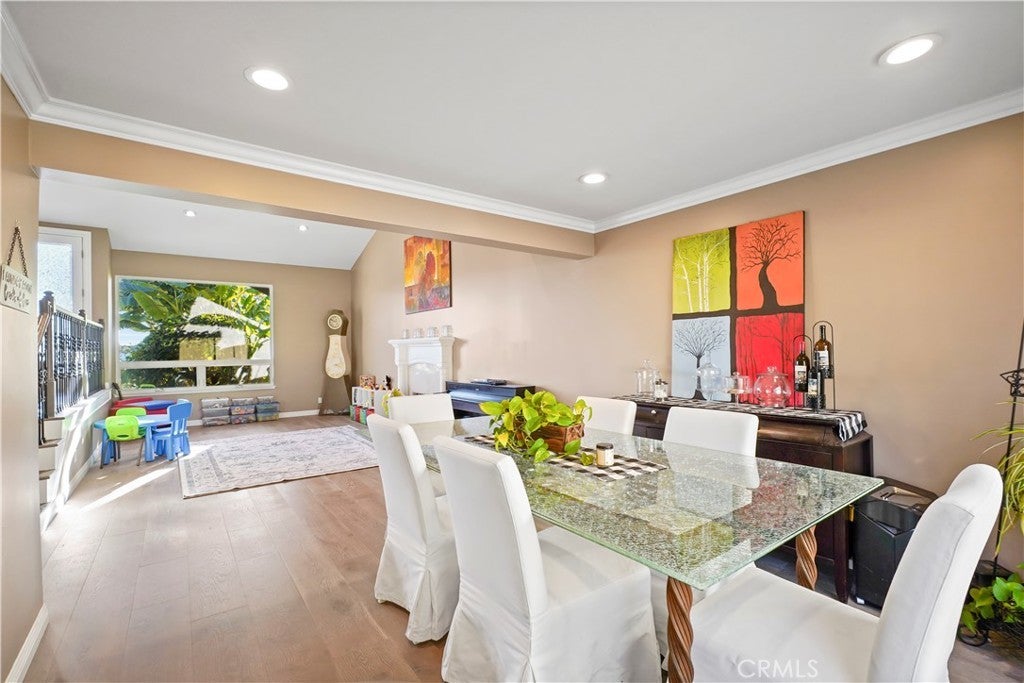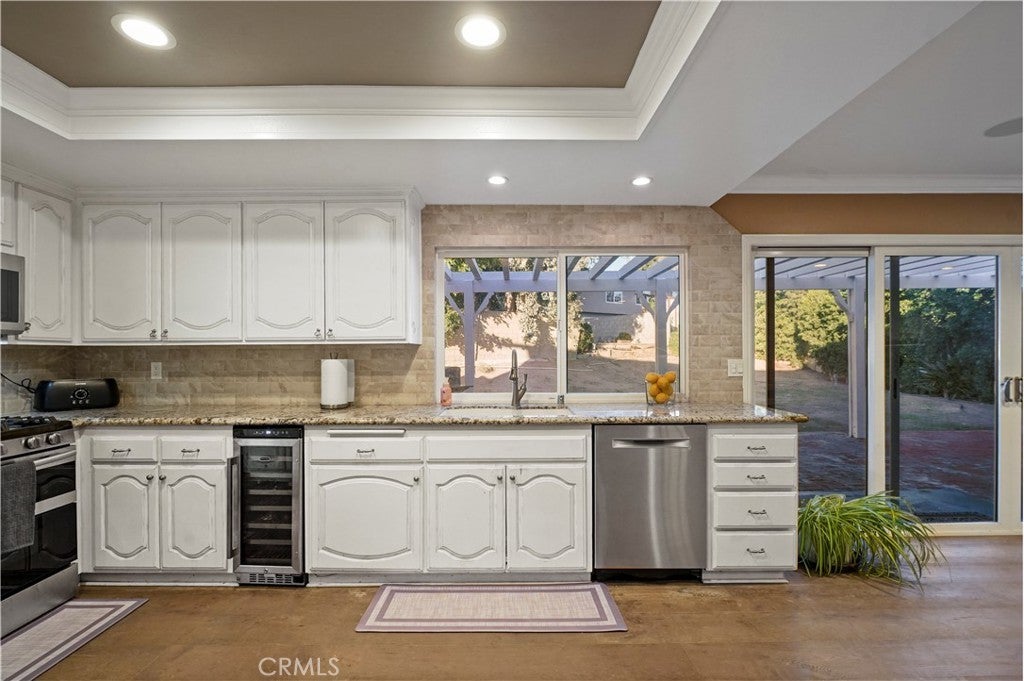 Welcome to 2229 Chesterton, a beautifully upgraded 5-bedroom, 3-bath home nestled in a peaceful cul-de-sac within one of Simi Valley's most desirable neighborhoods. This remarkable residence is designed with comfort, style, and charm, seamlessly blending thoughtful updates with timeless charm. You are sure to love the spacious primary suite located upstairs, adorned with beautiful engineered wood flooring. The home features new insulation combined with new innovative COOL-ROOF Shingles, which reflect more heat, keeping the temperature down during the summer months, along with fresh exterior paint that provides a crisp, clean look. The inside is filled with natural light entering through the energy-efficient Dual-pane windows, recessed lighting, and elegant crown molding enhance the aesthetic throughout the entire home. The main level showcases a luxurious open concept, complemented by a custom staircase. The living room's wood/gas burning fireplace is perfect for s'mores, and a mantle that eagerly awaits stockings with your young stars' names on them, perfect for cozy gatherings. The gourmet kitchen and dining area are truly a chef's delight. The remodeled kitchen features granite countertops and soft-close cabinets, equipped with high-end stainless-steel appliances, including a 5 Burner dual oven door, double oven range, and a dishwasher. An expansive pantry offers additional storage and preparation space, while the seamless flow into the pergola patio allows for ideal indoor-outdoor enjoyment. The huge backyard is a blank canvas ready for an artist to make it their own personal oasis. (BE ADVISED: 26' ft of Block wall recently fell over due to neighbors' trees and root system. Seller is willing to split the cost of the buyer's choice replacement barrier of choice.) ADU potential for multigenerational separate living.MUST SEE! This won't last.