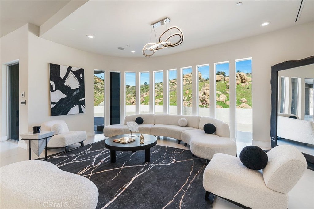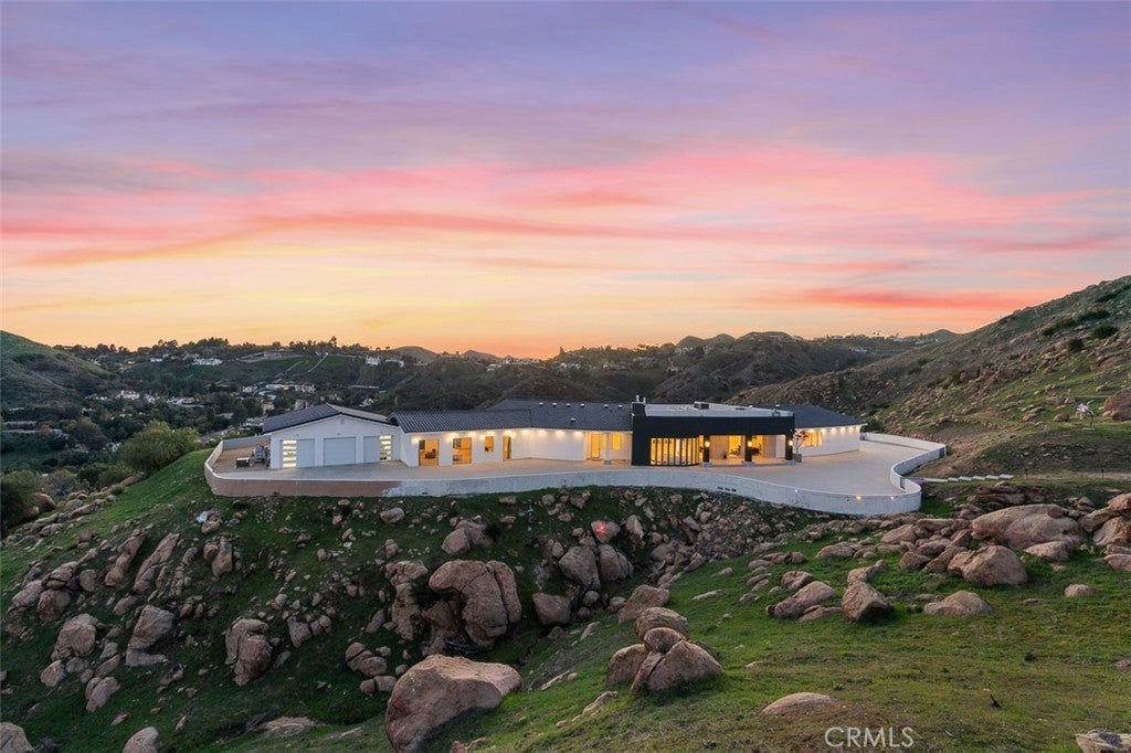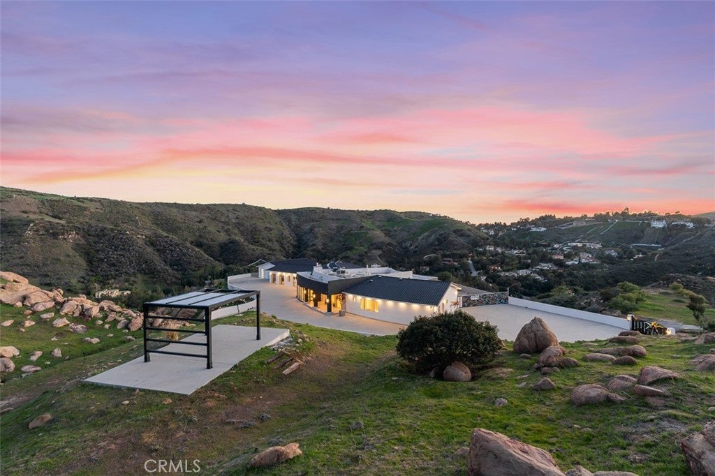 Discover the pinnacle of luxury living in this 2020-built, single-story modern estate, situated on over 31 private acres in the prestigious guard-gated community of Bell Canyon. Accessed via a triple-gated entry and a quarter-mile private driveway, this architectural masterpiece offers unobstructed 360-degree mountain vistas, ensuring both serenity and seclusion. As one of the most coveted properties in Bell Canyon, this estate boasts 5 spacious bedrooms and 5.5 opulent bathrooms across 6,751 square feet of meticulously designed living space. Constructed with steel framing, copper plumbing, and premium insulation, the home exemplifies quality and durability. Inside, wide plank oak flooring and Italian 48x48 Imola tiles complement soaring ceilings and solid core doors adorned with EMTEK chrome hardware. The state-of-the-art chef's kitchen features a massive center island, mother-of-pearl backsplash, Thermador appliances, and a 16-foot buffet—perfect for entertaining. Every room is bathed in natural light, offering breathtaking mountain views. This property captures the perfect balance of privacy, grandeur and tranquility. Additional amenities include a media/ballroom, game room, and an entertainer's wet bar. The grand primary suite offers seamless indoor/outdoor living, an all-stone spa-like bath, and a 370-square-foot walk-in closet. The estate's expansive grounds feature large flat areas ideal for equestrian pursuits or recreational activities. Bell Canyon's Class-A equestrian facility accommodates over 75 horses and is open to both residents and non-residents. Community amenities include parks, hiking trails, pickleball and tennis courts, playgrounds, a residents' gym, and organized events for all ages.The large backyard offers a fully equipped barbecue center, fireplace with patio seating, room for your own farm or ADU or extra car garage, plus loads of space for year-round relaxation or hosting family gatherings, all framed by peaceful views of the surrounding hills & mountains. This elegant home is also served by the award-winning Las Virgenes School District, which provides convenient bus service for Bell Canyon residents.This home has its own fire hydrant connected to the city in case of emergencies, Price reduced by $499,000 to account for the home being offered without a swimming pool. For buyers who would like to add one, full engineering plans are already completed and available. This home is also available for rent @$28,000