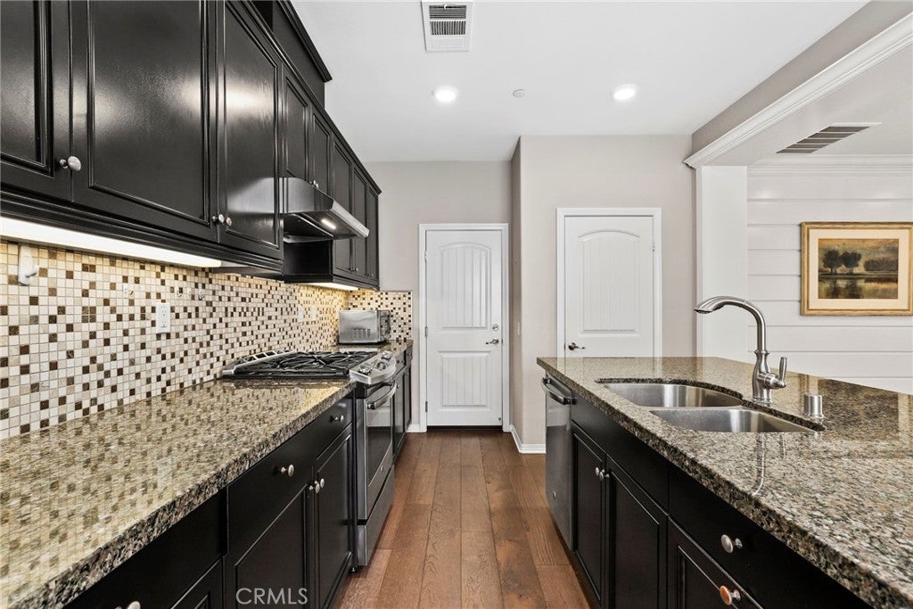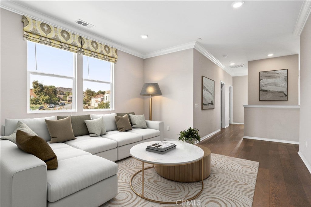 Welcome to this stunning Aria Plan III Model home, ideally situated on a premium corner lot in the highly sought-after West Creek community of Valencia! Built in 2015 and showcasing custom builder upgrades, this former model home combines luxury, comfort, and style in every detail. The open-concept floor plan features 4 spacious bedrooms, 3 full baths, and a bright living area filled with natural light. The gourmet kitchen boasts granite countertops, maple cabinetry, stainless steel appliances, and a large island that opens to the dining and family room—perfect for entertaining. A full bedroom and bathroom downstairs offer flexibility for guests, in-laws, or a private home office. Upstairs, you’ll find a generous loft and a beautiful primary suite with a spa-inspired bath and walk-in closet. Designer touches, upgraded flooring, and refined finishes throughout elevate this home’s modern appeal. Enjoy one of the largest lots in the Aria collection, featuring a rare grassy front area, a spacious landscaped backyard, and unobstructed views of the surrounding hills—ideal for relaxing or hosting gatherings. As a resident of West Creek, you’ll have access to resort-style amenities including sparkling pools, spas, BBQ areas, playgrounds, and a private clubhouse. The home is walking distance to top-rated schools, scenic paseos, and parks, with shopping, dining, and freeway access just minutes away. Low HOA Dues! A rare opportunity to own the Model one of Aria’s most desirable plans—move-in ready and truly a must-see!