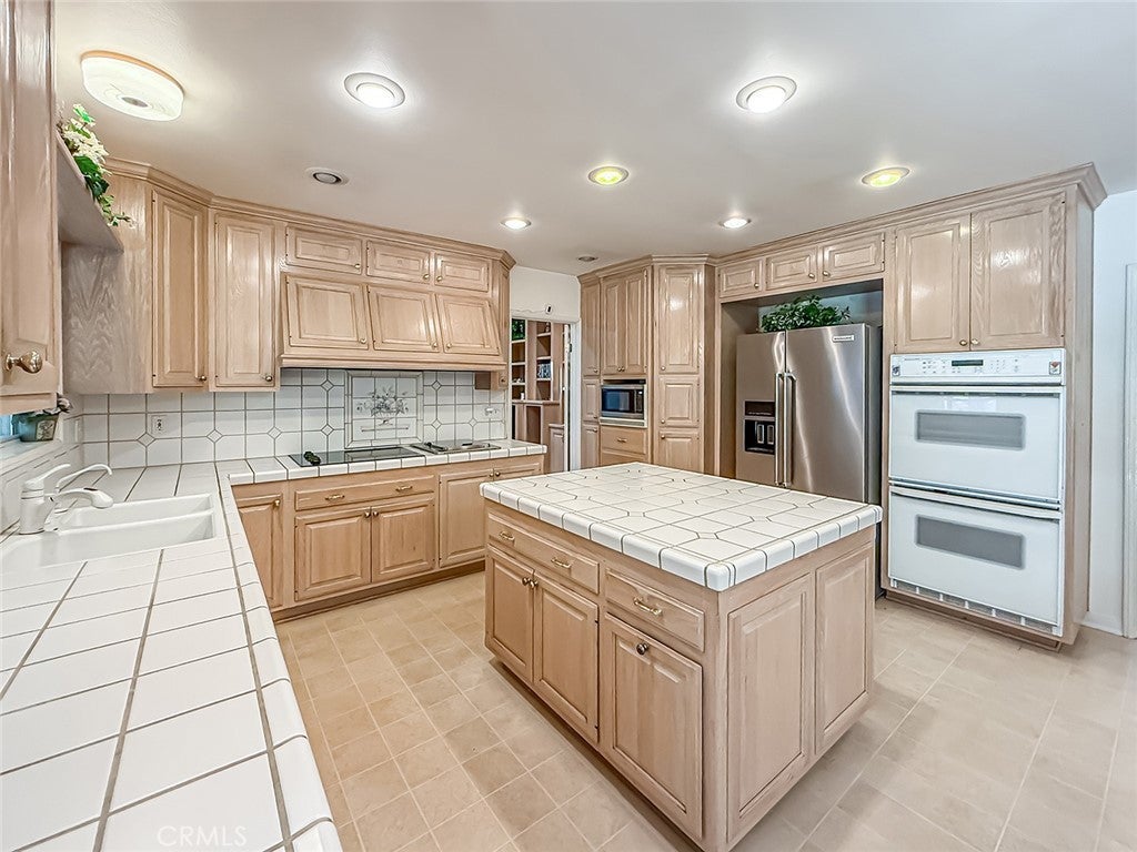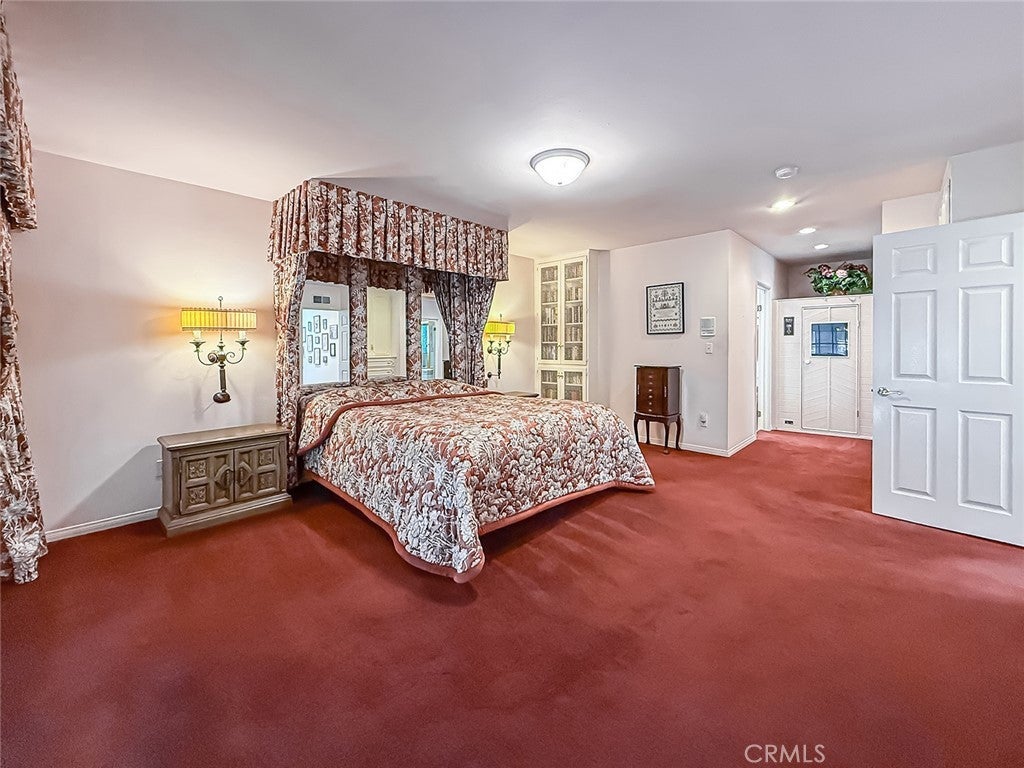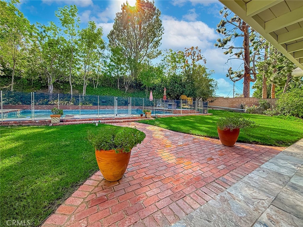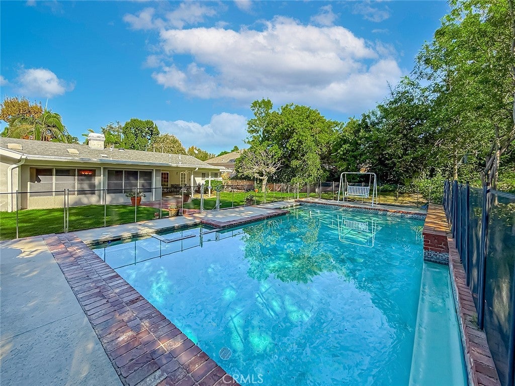 Absolutely gorgeous single story home with 5 Bedrooms, 3 Bathrooms, 3,189 Sq.Ft. of living space, on a 16,992 Sq.Ft. Lot, with attached 2 car garage, possible RV parking, pool and spa. Exquisite curb appeal with palm trees and lots of driveway space for parking and possible RV, with brick ribbon walkways. Beautiful (leaded glass) double door entry leads you to the foyer overlooking the formal living room with 4 custom curio cabinets with glass shelves and lighting. The formal living room has high ceilings, plenty of natural light, elegant fireplace, and is open to the large dining room. Family room with built-in book shelves, two skylights, attached office space with French doors, custom cabinets and a sliding door to the sun room. Kitchen with plenty of storage, Center Island, stovetop with separate indoor grill, Maytag dishwasher, trash compactor, KitchenAid ovens, large breakfast area and opens to a covered patio outside. 5 bedrooms total (4 on the West side of the house including the primary and 1 bedroom and bathroom off of the kitchen). Extra-large primary bedroom with built-in closets, cabinets, and drawers plus a built-in sauna. Ensuite primary bathroom with 2 sinks, lots of countertop space, and custom step up spa tub with glass shower enclosure. All bedrooms of good size. Hallway bathroom with pocket door separating the shower with tub from the sinks area (so two people can use it at once). Inside laundry room. Gorgeous backyard with mature landscaping, brick ribbon gated pool and spa, park like grass area, large side yard, and covered patio make this a perfect backyard for entertaining. Located in the award winning Granada Hills Charter High School district.