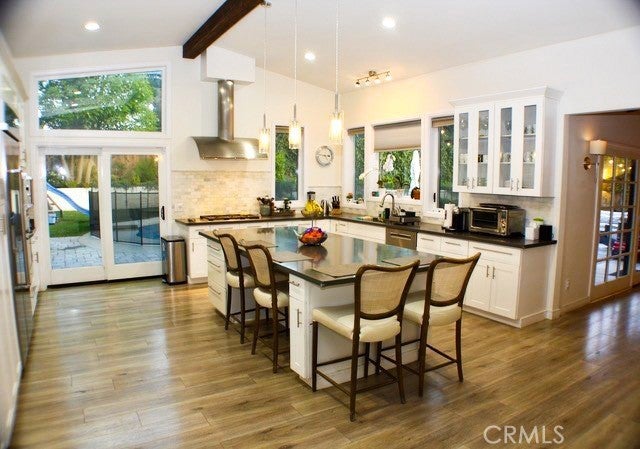Stunning Mid Century modern designed by Charles Du Bois! This gorgeous 4 bedroom POOL home is remodeled to the 10’s w/ a contemporary design! Original bright open floorplan w/vaulted ceilings and center island gourmet kitchen featuring white shaker cabinets, quartz countertops, top of the line appliances and 6 burner cooktop with high CFM designer hood. This chefs dream kitchen opens to the spacious living room and the large family room w/ sliders allow easy access to the perfect private backyard with lush landscaping, sparkling pool / spa and multiple patios to accommodate entertaining and outdoor dining! Large circular driveway with 2 car garage and tons of built-ins for storage! Amazing neighborhood in prime location south of the Blvd adjacent to Calabasas close to Bristol Farms, Starbucks, Farmers Market, Commons of Calabasas, The Village and award winning school district!