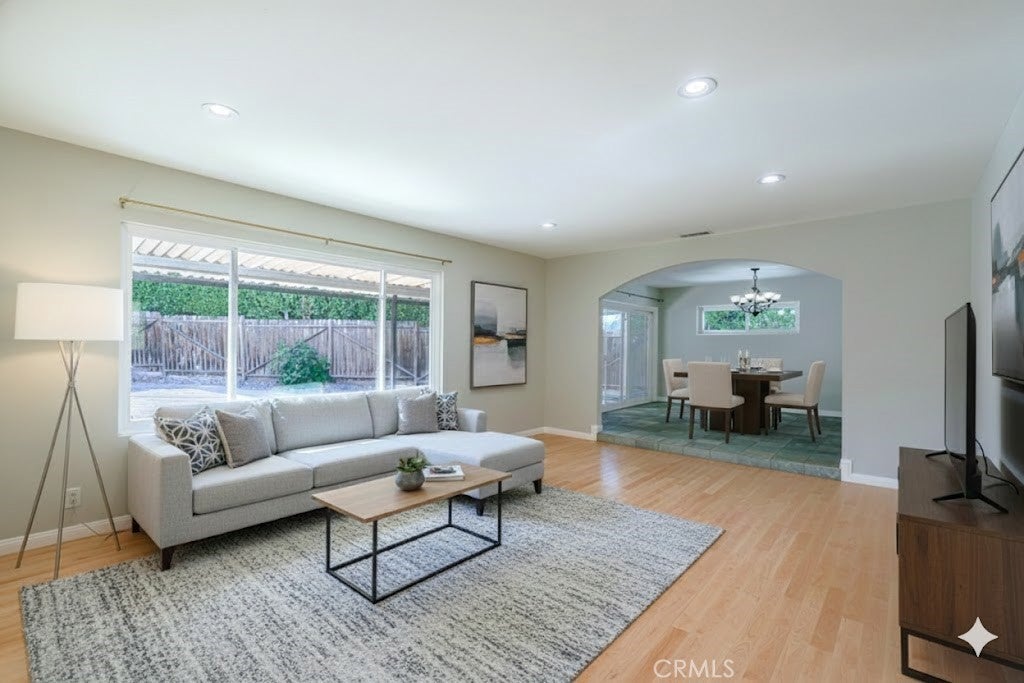 Incredible opportunity to purchase a beautiful POOL home nestled on a tranquil cul-de-sac in Woodland Hills! This stunning 4-bedroom, 3-bath mid-century ranch-style home offers over 2,300+ SF of living space! The spacious living room perfectly balances timeless design with modern comfort. Exceptional curb appeal, drought-friendly landscaping, and signature mid-century details set the tone for this remarkable home. Hardwood and natural slate flooring flow throughout the home, creating a seamless blend of warmth and sophistication. The formal living room features rich maple hardwood floors, recessed lighting, and effortlessly connects to a formal dining area with direct access to the backyard. The kitchen shines with crisp white countertops, shaker-style cabinetry, quality appliances, a walk-in pantry, and a breakfast nook bathed in natural light. A comfortable family room, accented by crown molding and a sliding glass door to the backyard provides a flexible living and entertaining space. Four generously sized bedrooms are thoughtfully positioned for privacy, including a serene primary suite with hardwood floors, dual closets, and an en-suite bathroom. A versatile bonus room next to the garage offers endless possibilities as a home office, gym, or creative studio. Set on a sprawling 13,000+ sq. ft. lot, the backyard is an entertainer’s dream, featuring a spacious covered patio, lush turf lawn, walking paths, mature fruit trees, a cozy firepit lounge, and a recently renovated POOL/SPA. Located just minutes from premier shopping and dining at Westfield Topanga and The Village, as well as nearby entertainment and outdoor recreation, this exceptional Woodland Hills residence presents a rare opportunity for refined living in one of the Valley’s most desirable neighborhoods! Some of the recent upgrades include : NEWLY RENOVATED POOL + SPA WITH NEW PLASTER AND ALL NEW POOL PLUMBING LINES/POOL EQUIPMENT, NEW PAVER POOL DECK, NEW 30 YEAR ROOF, NEW TANKLESS WATER HEATER, UPDATED ELECTRICAL PANEL, NEW LIGHT SWITCHES/ELECTRICAL OUTLETS, UPDATED SPRINKLER SYSTEM, NEW GARAGE DOOR, UPDATED HVAC SYSTEM WITH NEW AIR DUCTS, NEW GAS METER, EV CHARGER, AND MUCH MORE!