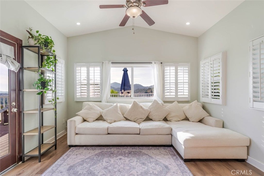 Exceptionally priced single-family home in the heart of Chatsworth This unique single-family home offers 3 bedrooms and 2 baths across approximately 1,100 sq. ft. of living space on a 3,547 sq. ft. lot. The bright and airy main level features French doors leading to the primary suite with a remodeled bath and shower. Enjoy double-pane windows with custom wood shutters framing one-of-a-kind mountain views. The outside features a wrap-around deck, inviting you to soak in the peaceful lush hillside and magical sunsets. Two spiral staircases add architectural character, one leading to a relaxing spa area and the other to the second and third bedroom and bath (buyer to verify). Ideal for those seeking a more self-sufficient lifestyle, this property is equipped with propane, septic, solar panels, and a Tesla Powerwall backup battery. Home offers ample parking for up to six vehicles.