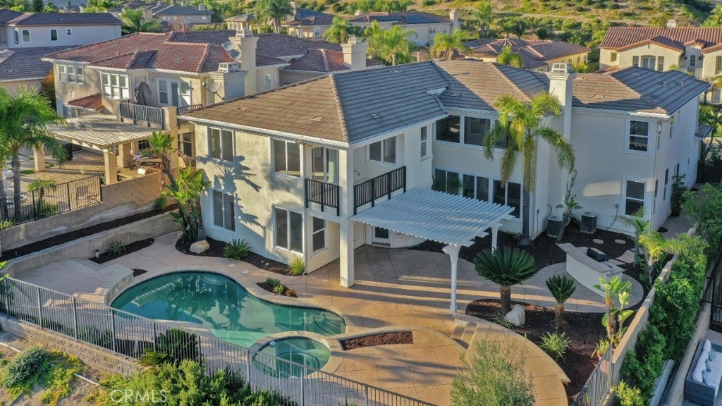 Embrace luxury living in this magnificent 5-bed, 5-bath, nearly 5,000 sqft residence, located in prestigious guard-gated Renaissance community of Porter Ranch. Set on prime elevated lot with breathtaking mountain & valley views, this grand estate combines timeless elegance with contemporary sophistication. The exterior showcases drought-conscious landscaping, stately natural stone accents, wood siding & beautifully colonnaded covered porch. Inside, a formal entryway welcomes you home with fresh interior paint, new carpeting & thoughtful touches throughout, like recessed lighting, high ceilings, dual zone AC & so much more! The formal living room makes a statement with soaring two-story ceilings, marble-surround fireplace, & custom built-ins. The formal dining room exudes refinement with a decorative tray ceiling, rounded bay windows. The gourmet kitchen is a chef’s dream featuring dark wood cabinetry, granite countertops, a central island with auxiliary sink, stainless steel appliances including built-in double ovens, a sunny breakfast nook with a curved bay window, & breakfast bar seating. The adjoining, open family room offers relaxed sophistication with a cozy fireplace & views of the mountains. A private bedroom with en-suite ¾ bath makes a perfect, private, guest suite while a den/office space, provides a quiet workspace & could be easily converted into an additional bedroom. Additional features include a convenient powder bath, dedicated laundry room with utility sink & storage space, & 2 attached garages, with direct access, offering parking for 3 cars. Upstairs, the luxurious primary suite is a private sanctuary with double-door entry, tray ceiling, sitting alcove, French doors to a private balcony with panoramic views, & a spa-inspired bath boasting dual vanities, soaking tub, walk-in shower with dual shower heads, & a massive walk-in closet. 2 additional bedrooms each feature en-suite baths & generous closets, while the upstairs bonus room offers flexibility as a media room, home gym, or study. The backyard is a true retreat, complete with a sparkling pool & spa, pergola-covered patio, & a built-in BBQ/outdoor kitchen designed enjoy the sweeping views. This home embodies comfort, style, & sophistication, with access to community amenities, including tennis courts & manicured grounds, all within minutes of The Vineyards shopping center, fine dining, & top-rated schools. Don’t let this one pass you by!